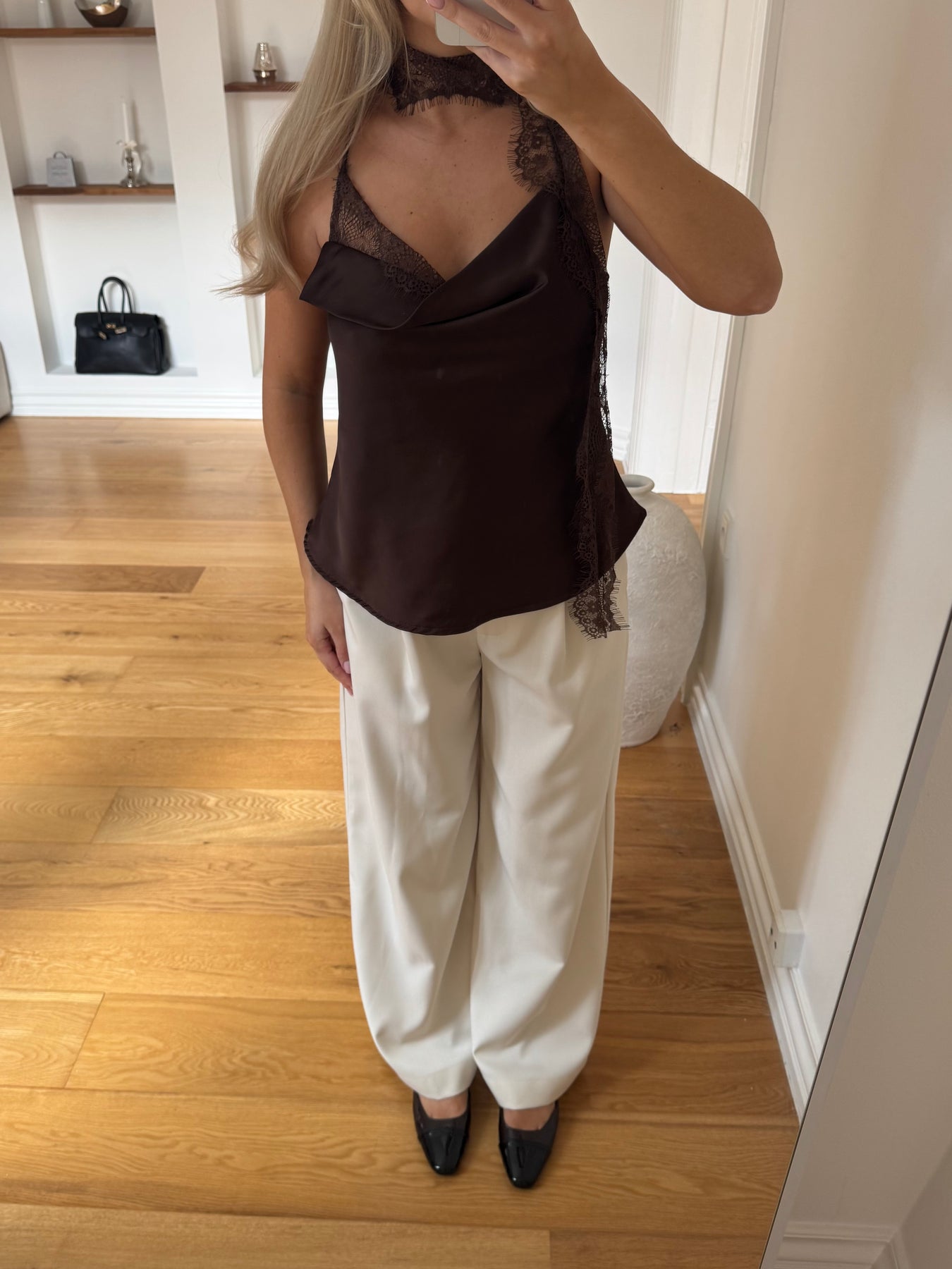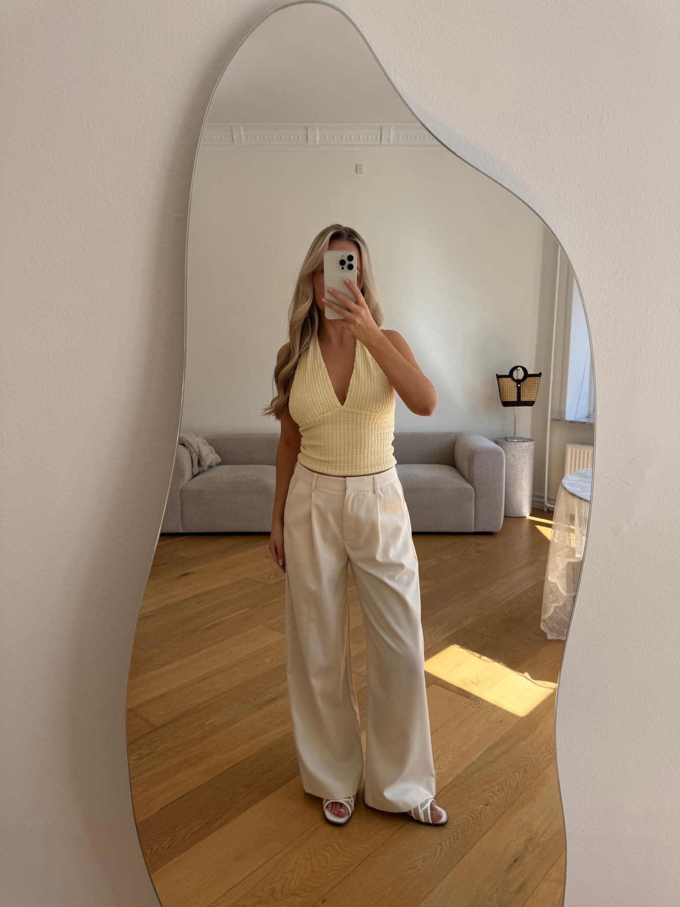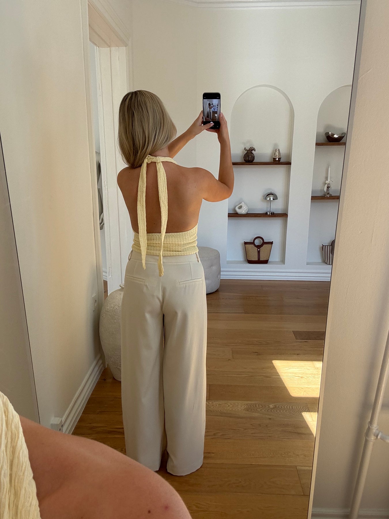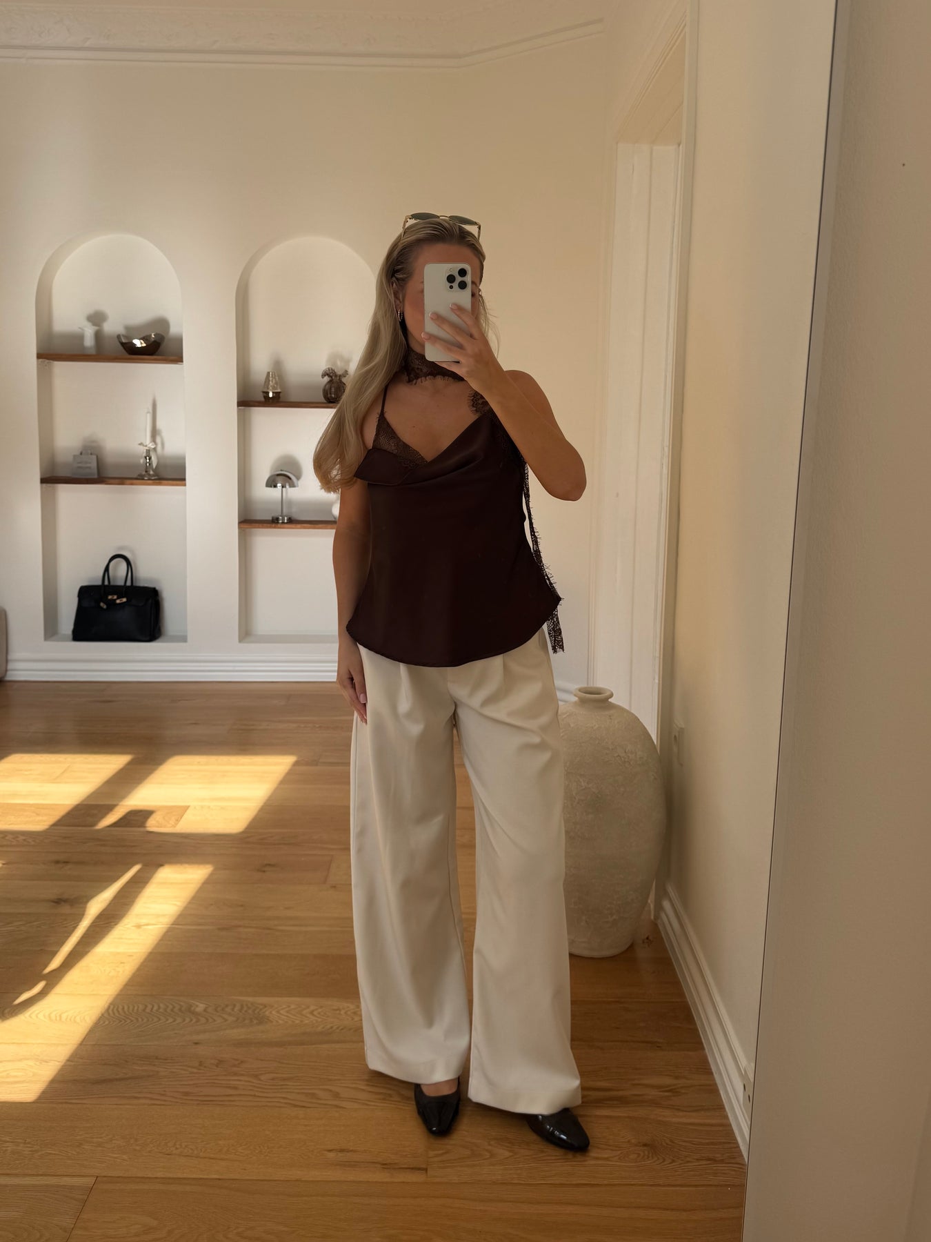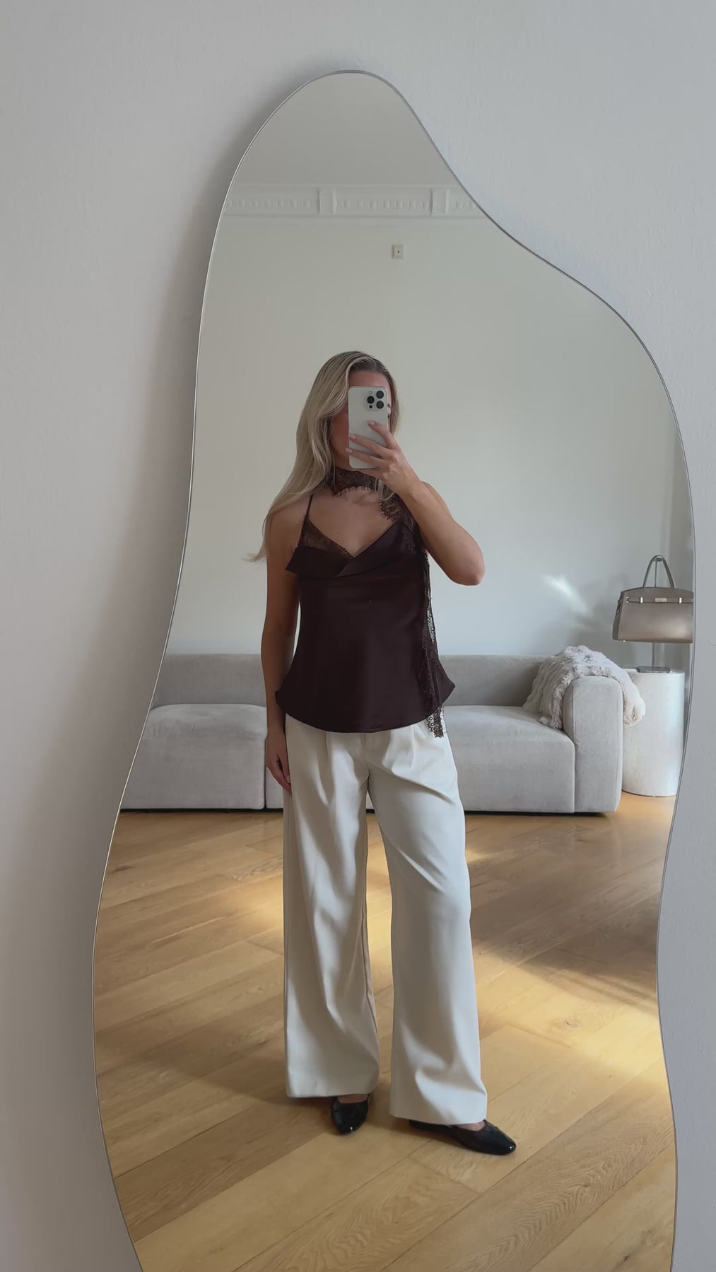 Anna er de perfekte bukser til en garderobe, der skal kunne det hele. Den høje talje og de brede ben giver et elegant, flatterende fald, mens det klassiske sorte design gør dem nemme at style til både hverdag og finere anledninger.