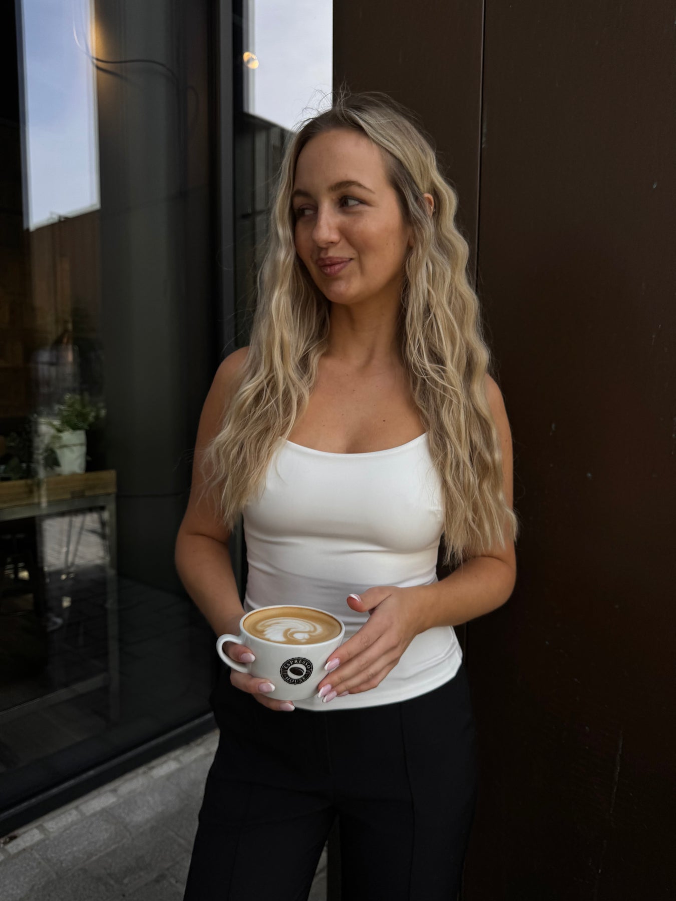 Anne toppen har de fineste spaghetti stropper. Den har en dyb udskæring og er perfekt til sommeren.