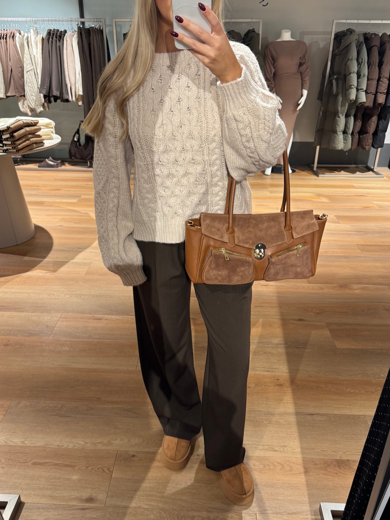 Helena strikke har det fineste kabel mønster og har et oversized fit. Strikken har en rund udskæring.
