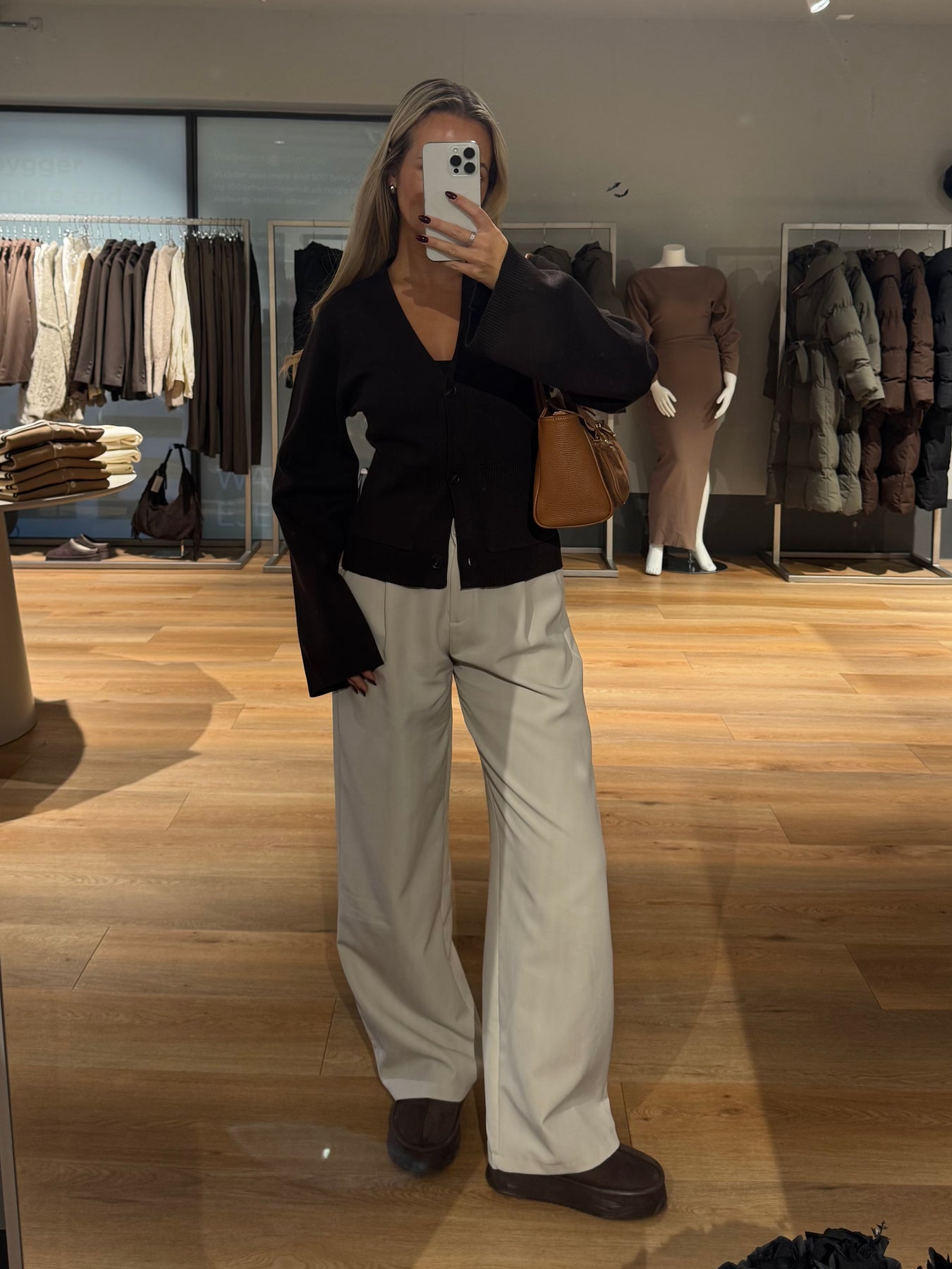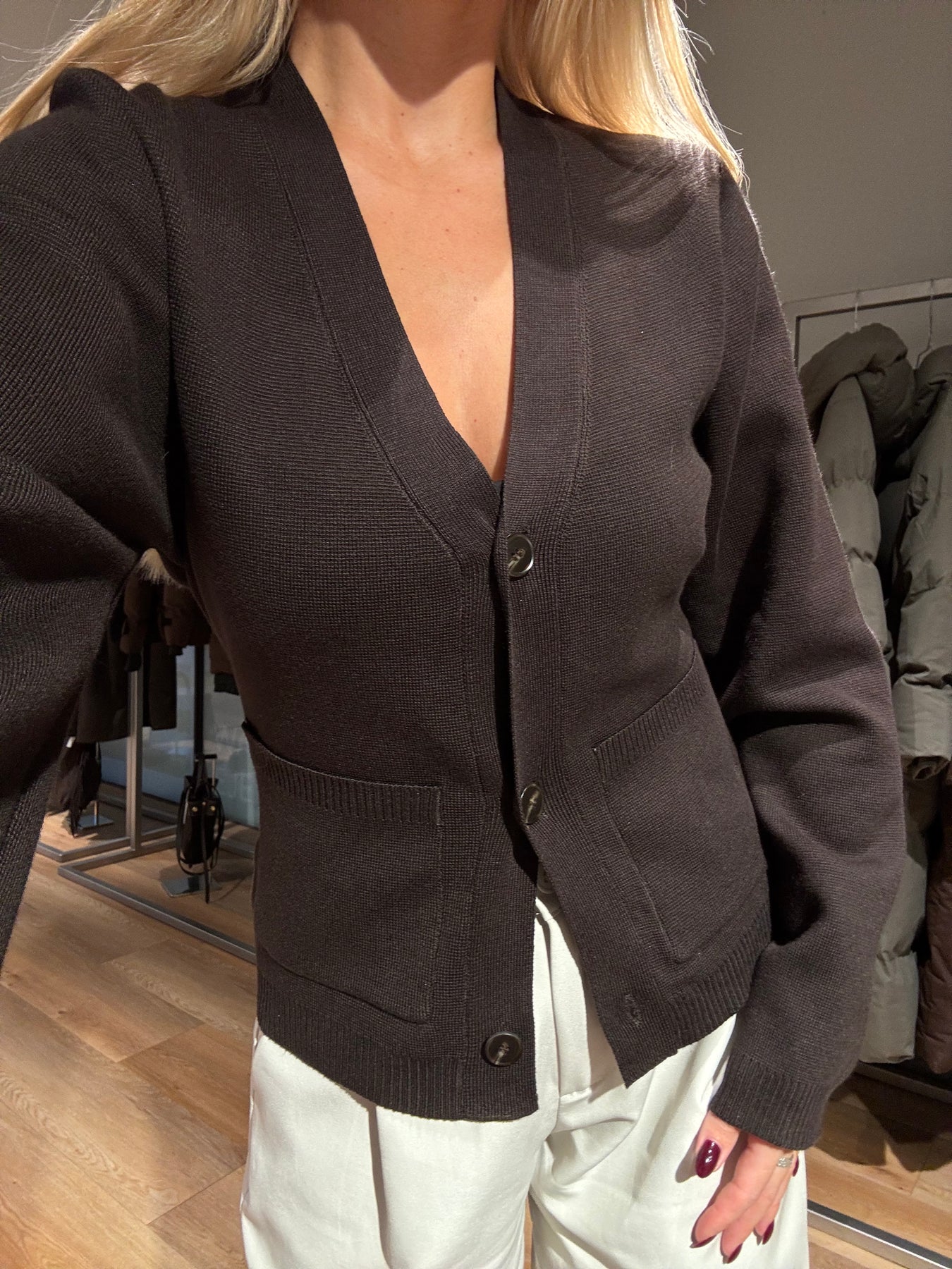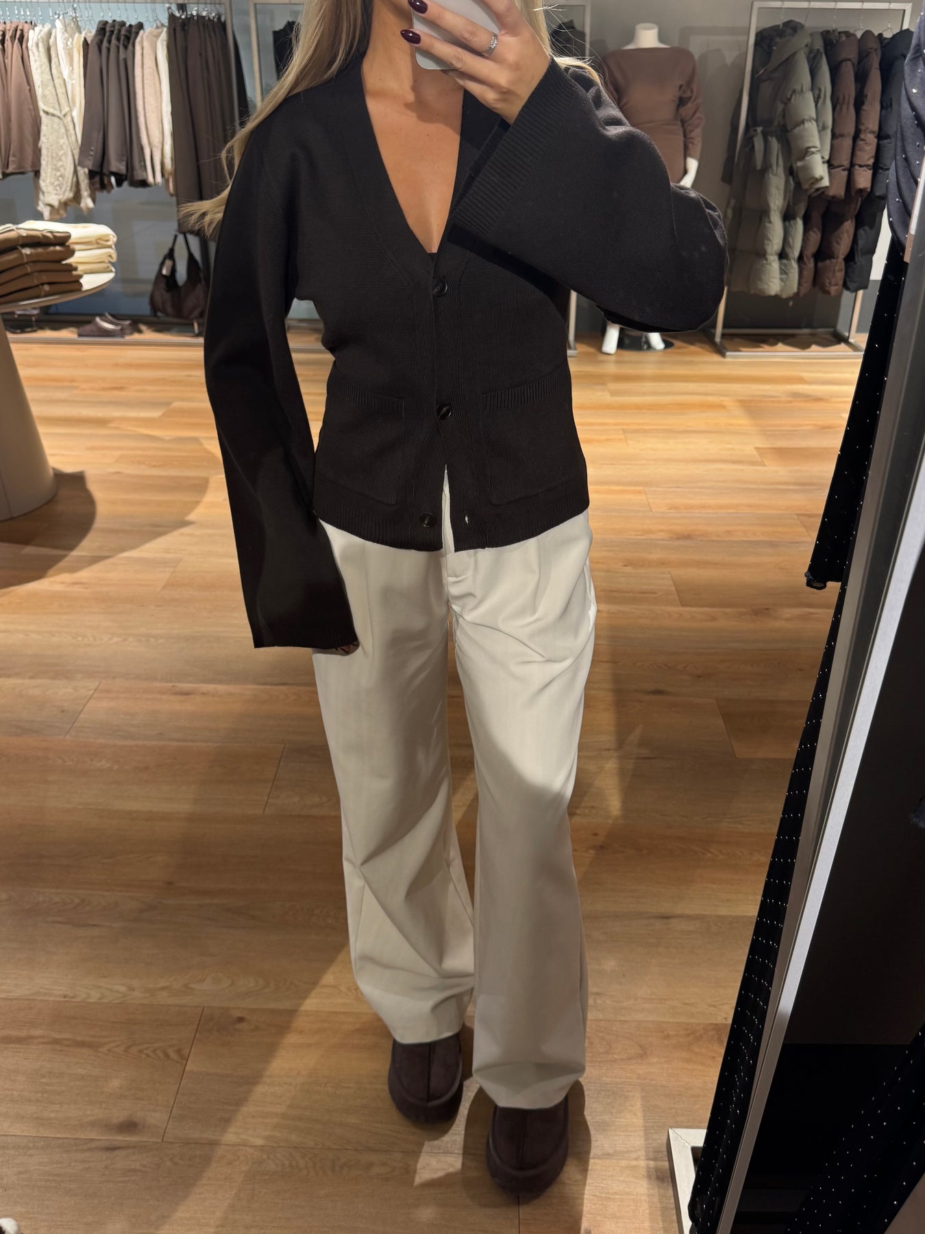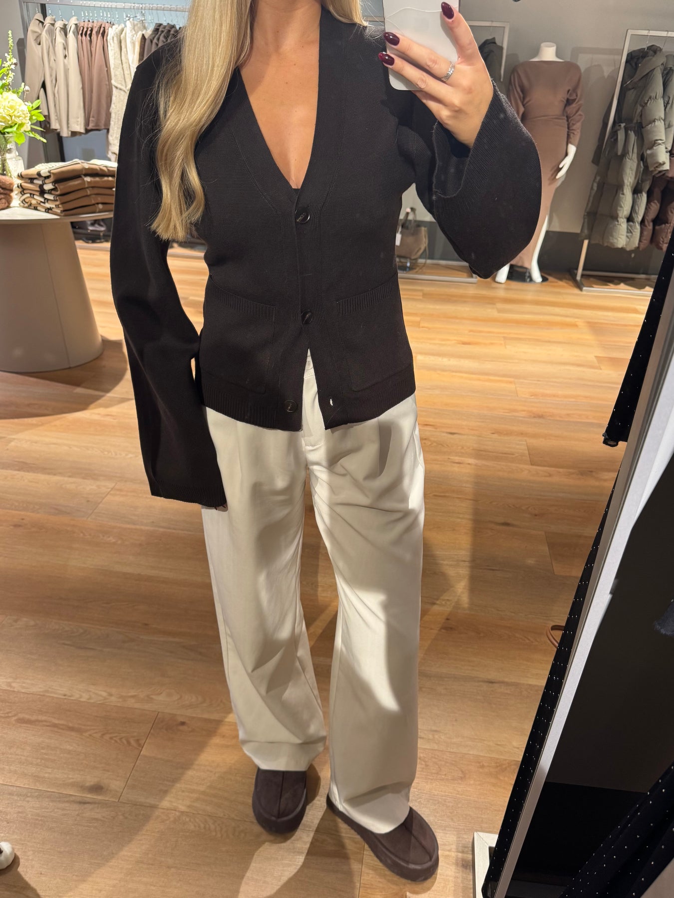 Vores Jennifer cardigan har brede ærmer og en oversized pasform. Cardiganen har 2 lommer fortil og de fineste knapper.