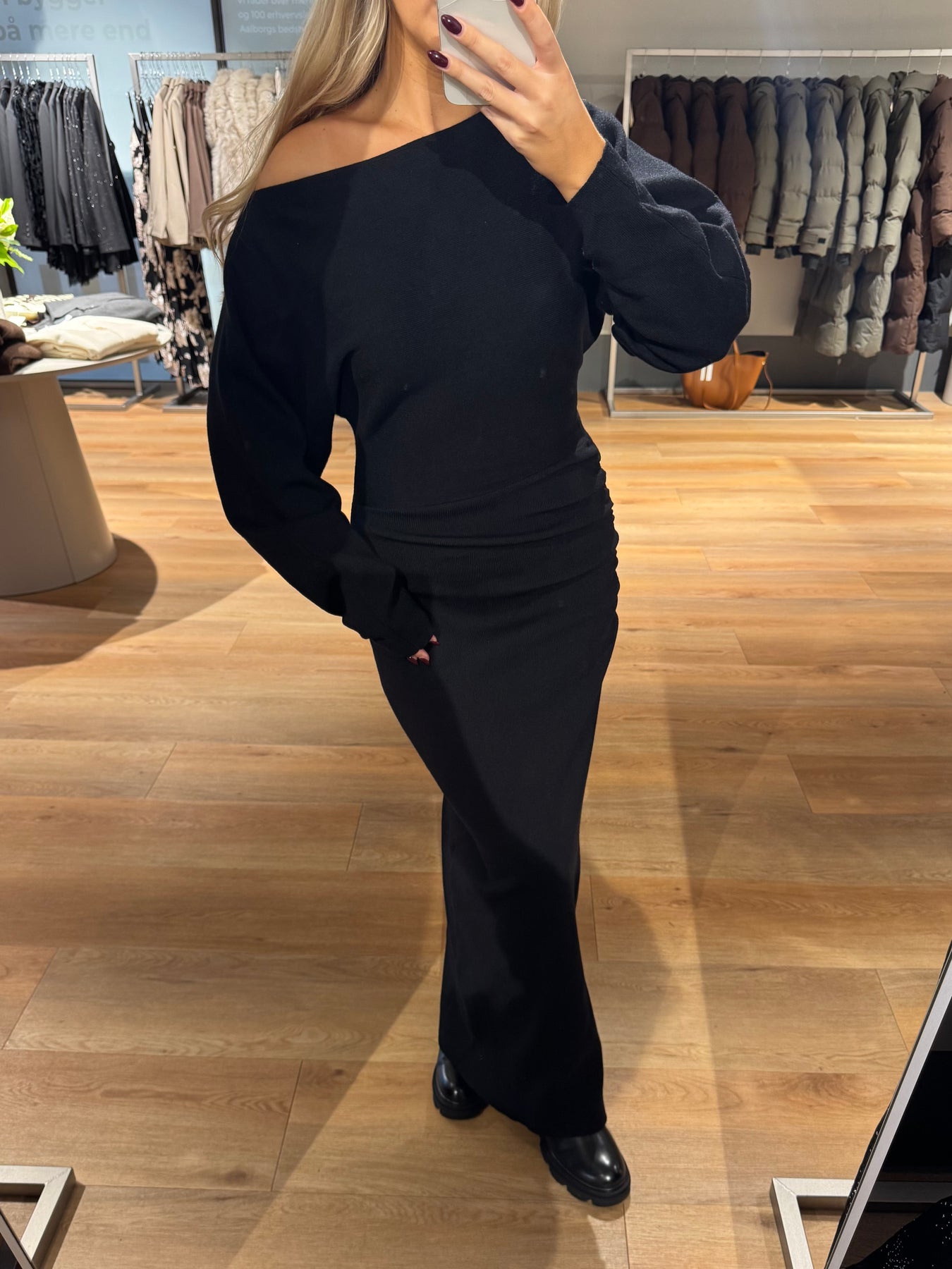 Jenny strikkjolen er perfekt til efteråret - den fine strik holder dig varm på de kolde dage. Den har scrunch i siden og på ærmerne, som giver den ellers klassiske kjole et pint.