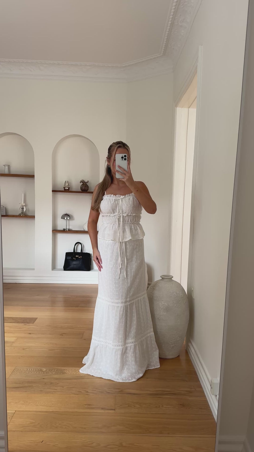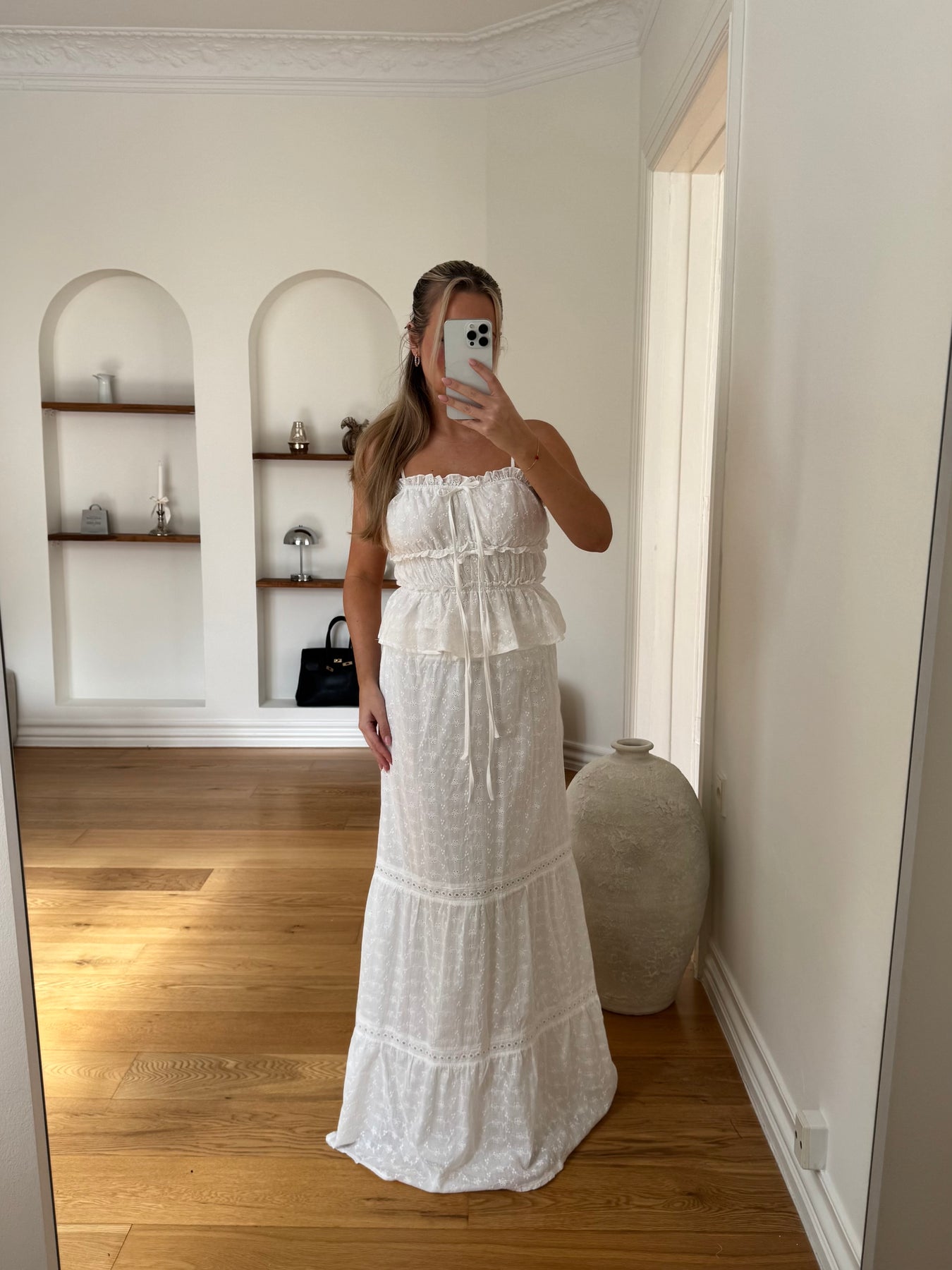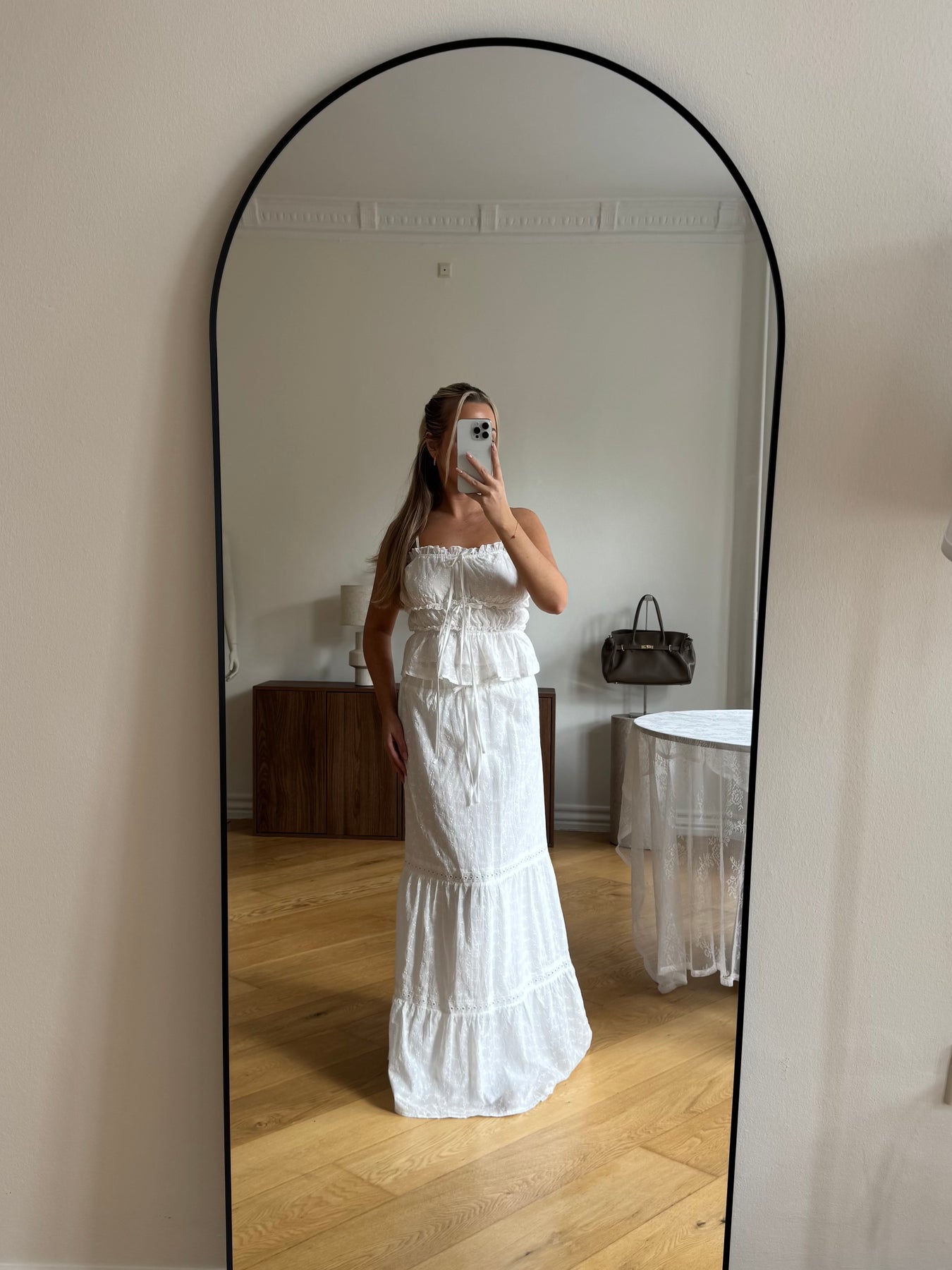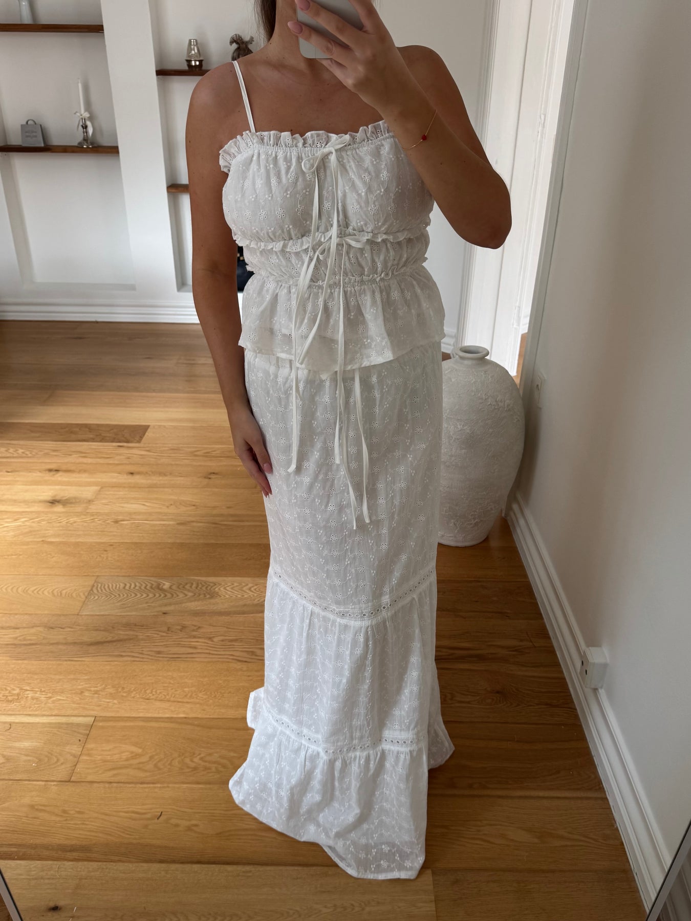 Style Laura Nederdel med den matchende Laura Top for et gennemført og romantisk sommerlook. Du kan også kombinere den med en enkel top eller skjorte for et mere afslappet, men stadig elegant outfit. Tilføj sandaler eller sneakers alt efter anledning.