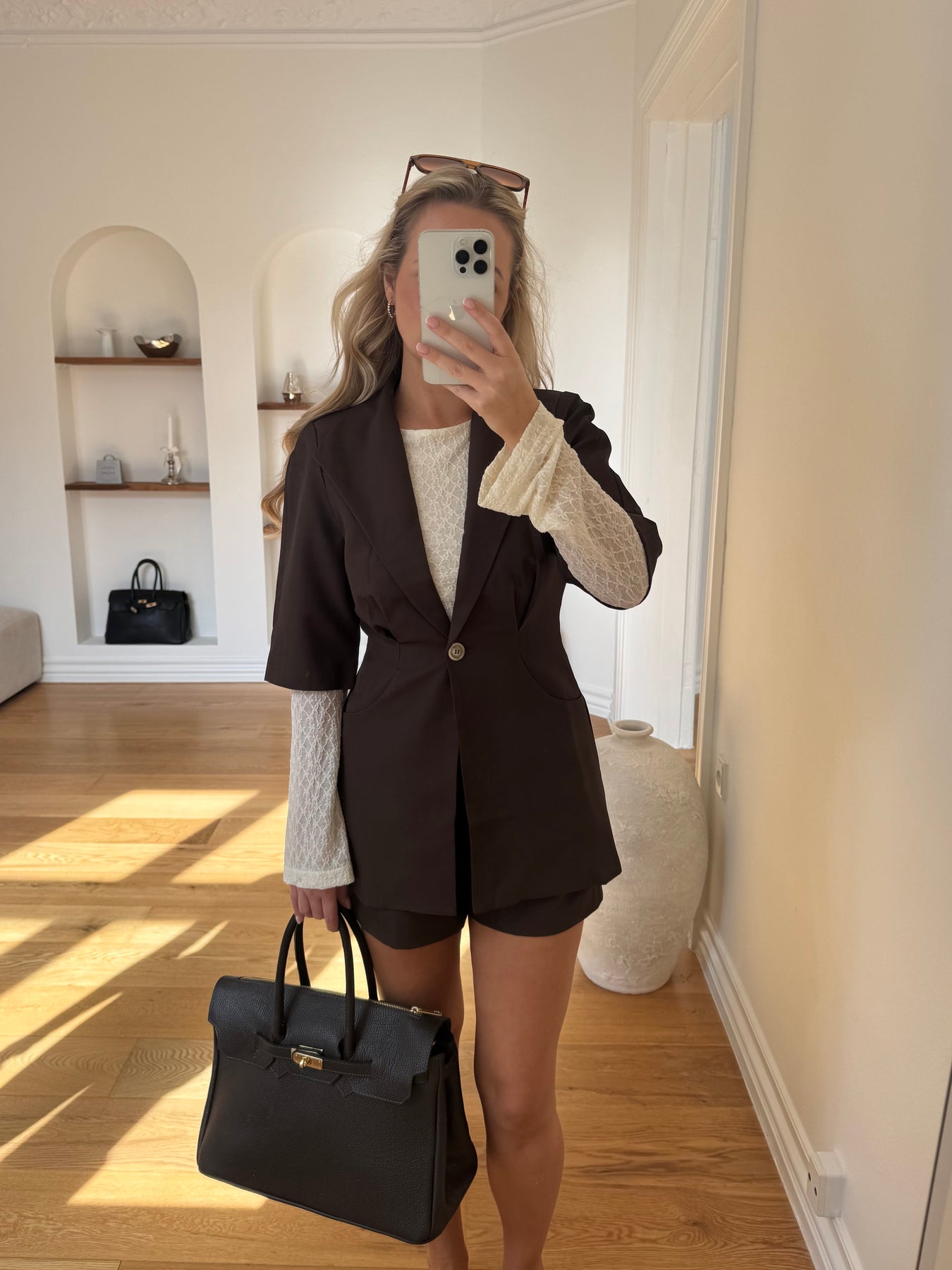 De korte ærmer og det lette design gør blazeren perfekt til både forår og sommer, hvor den kan bruges som et elegant lag over dine outfits.