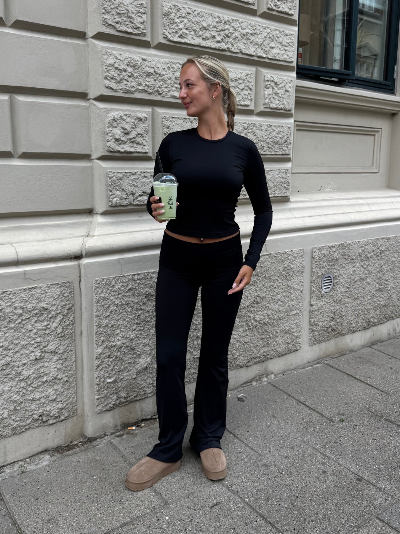 Vores fine Line bluse har det blødeste strækbare stof. Den har en rund hals og lange ærmer og passer perfekt sammen med Line bukserne.