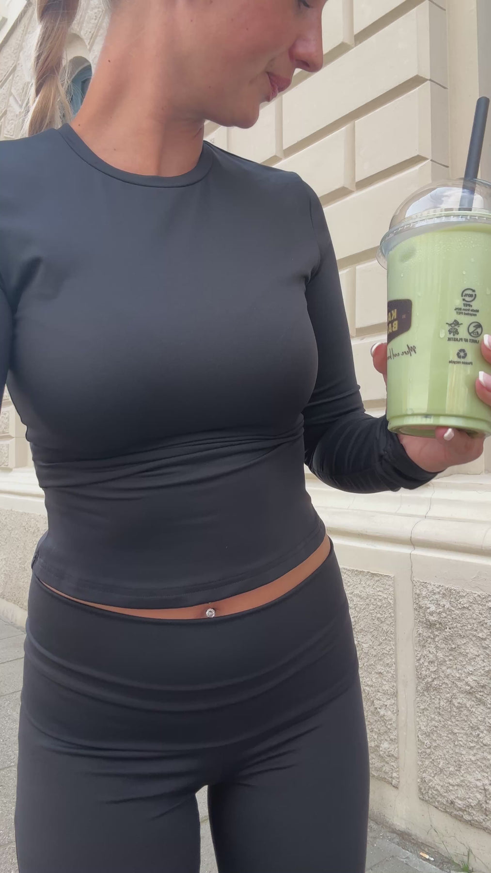 Line bukserne er super bløde og behagelige. De er perfekte til hverdag eller pilates og har en fold over kant. Match dem med den fine Line bluse.
