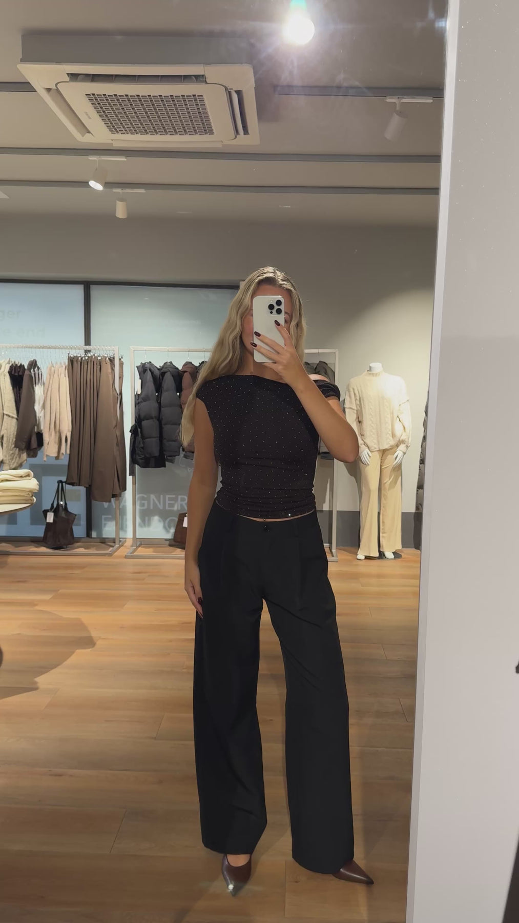 Den fine Lucy har de smukkeste sten og en drop shoulder. Toppen er tætsiddende og fremhæver figuren.
