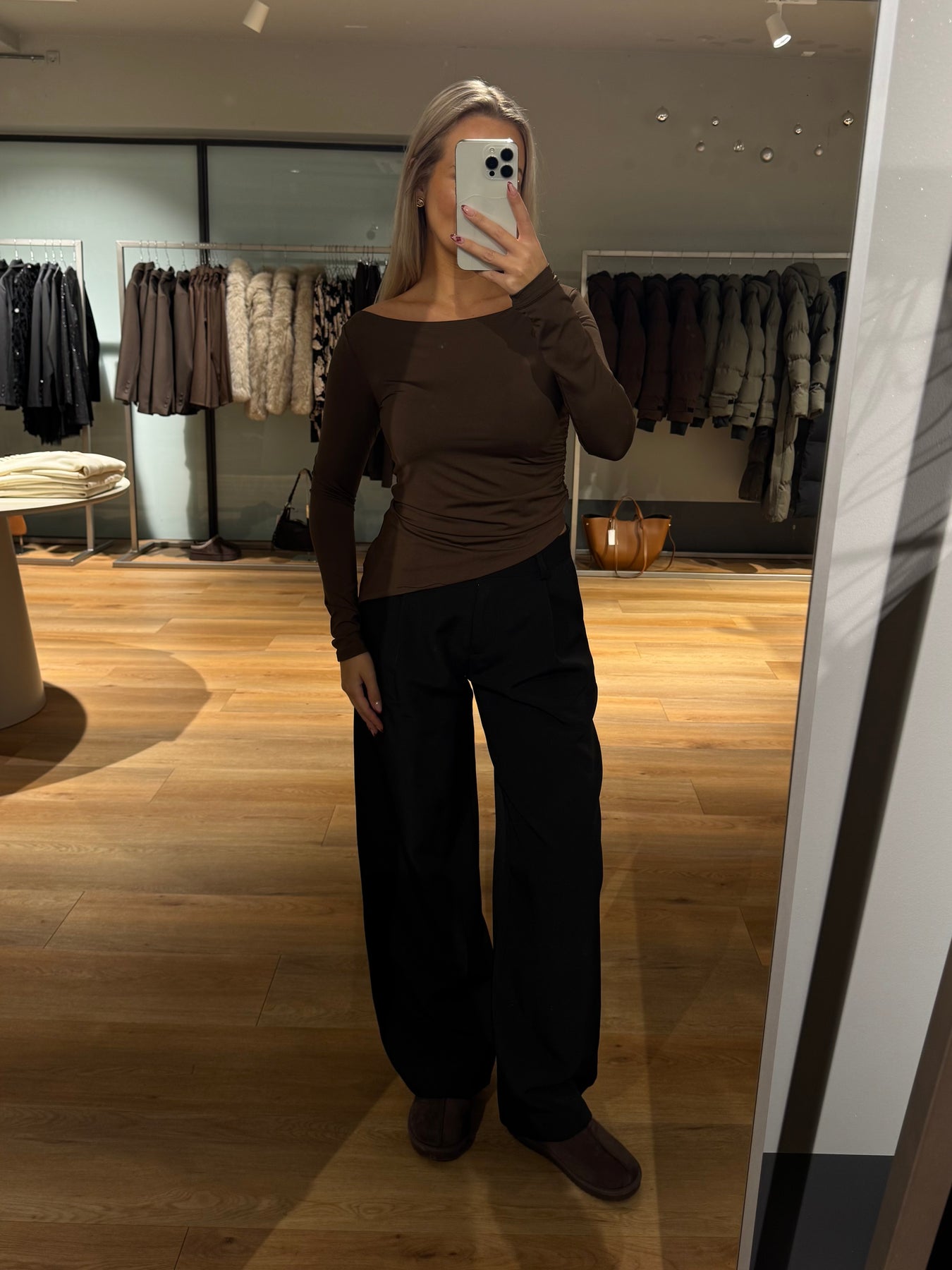 Malou blusen er perfekt til hverdag og er super let at style. Blusen har en asymmetrisk udskæring i bunden. Blusen er strækbar og lækker at have på.