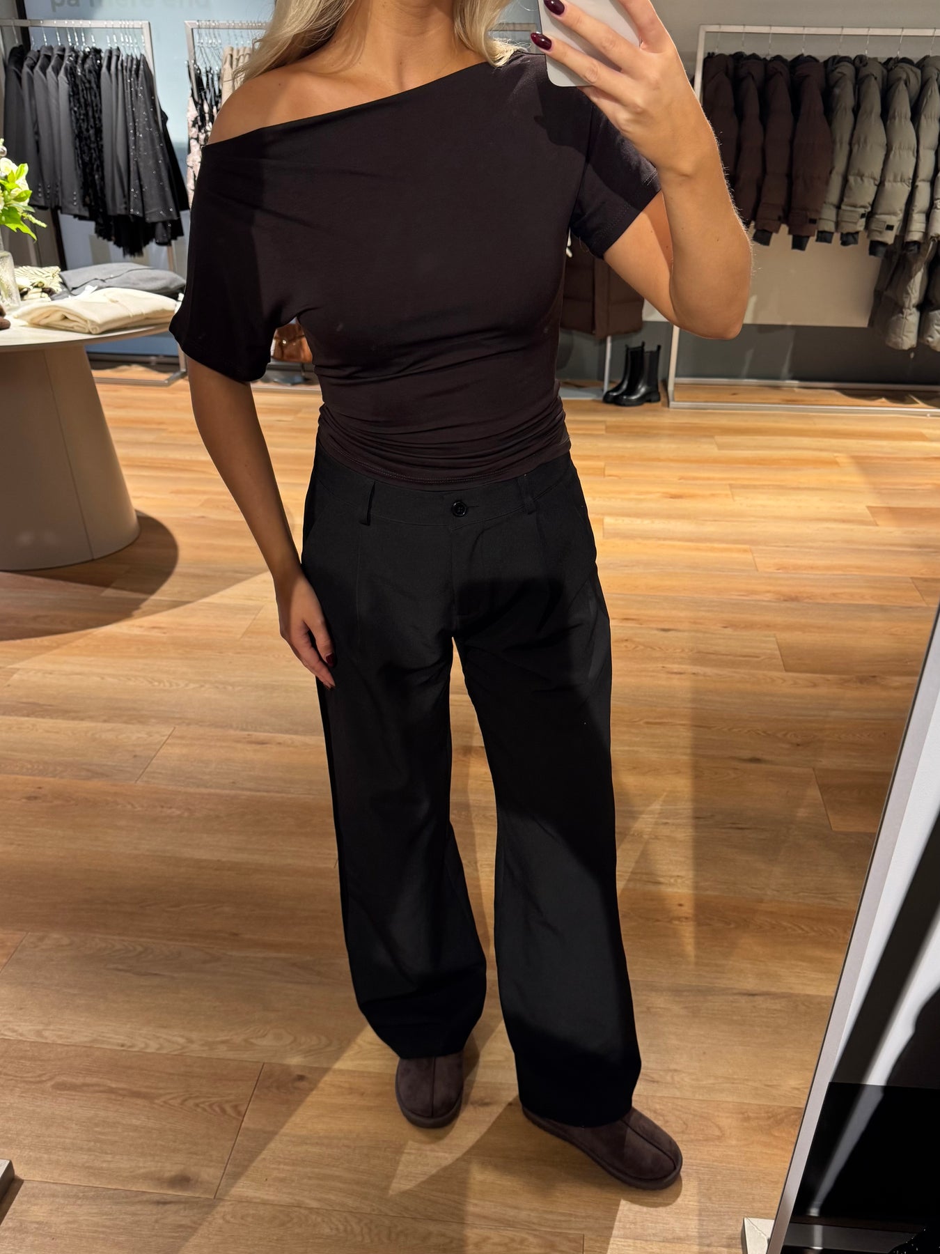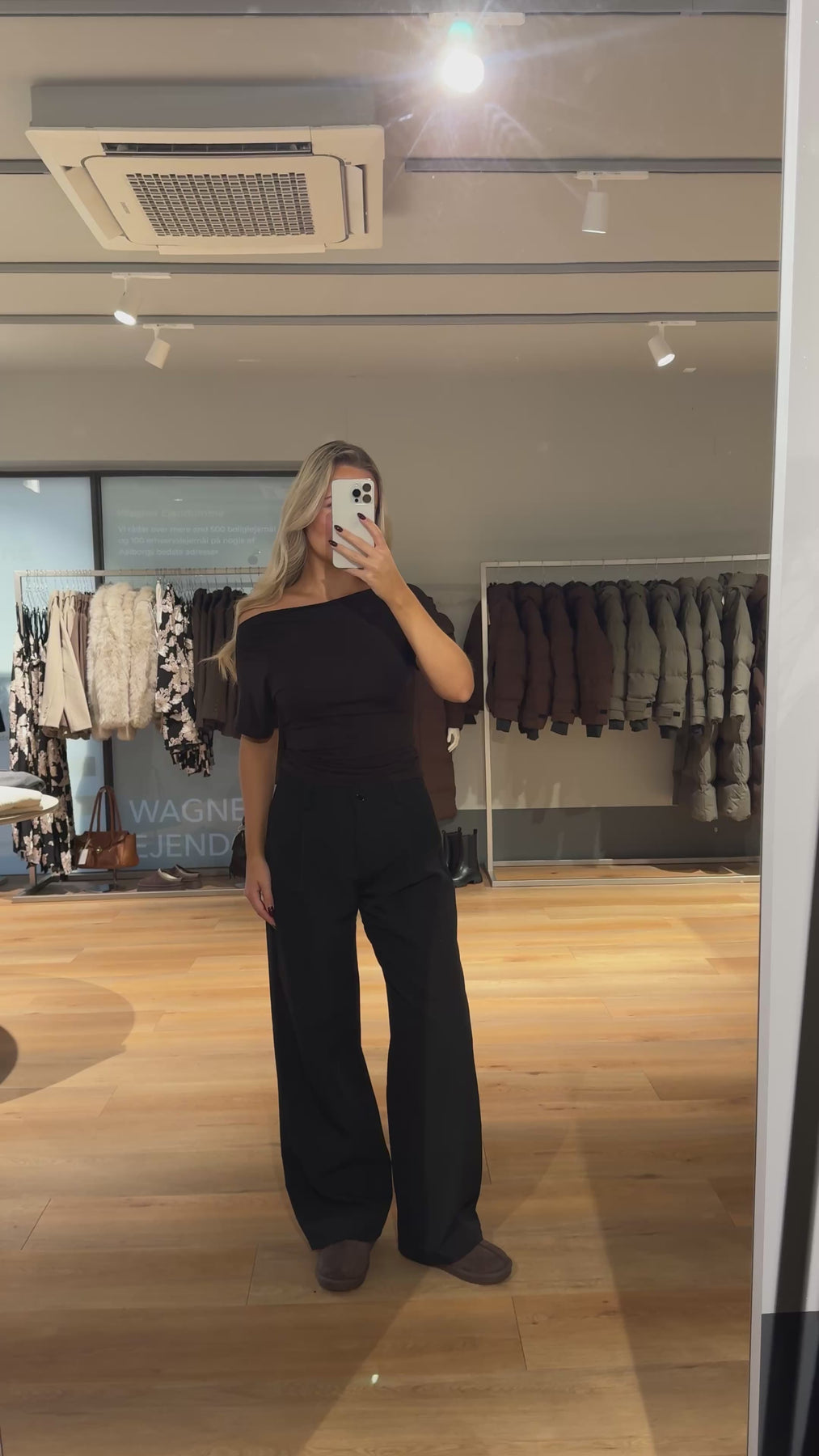 Mia toppen har en drop-shoulder og t-shirt ærmer. Den har det blødeste stof og er perfekt til hverdag og finere begivenheder.