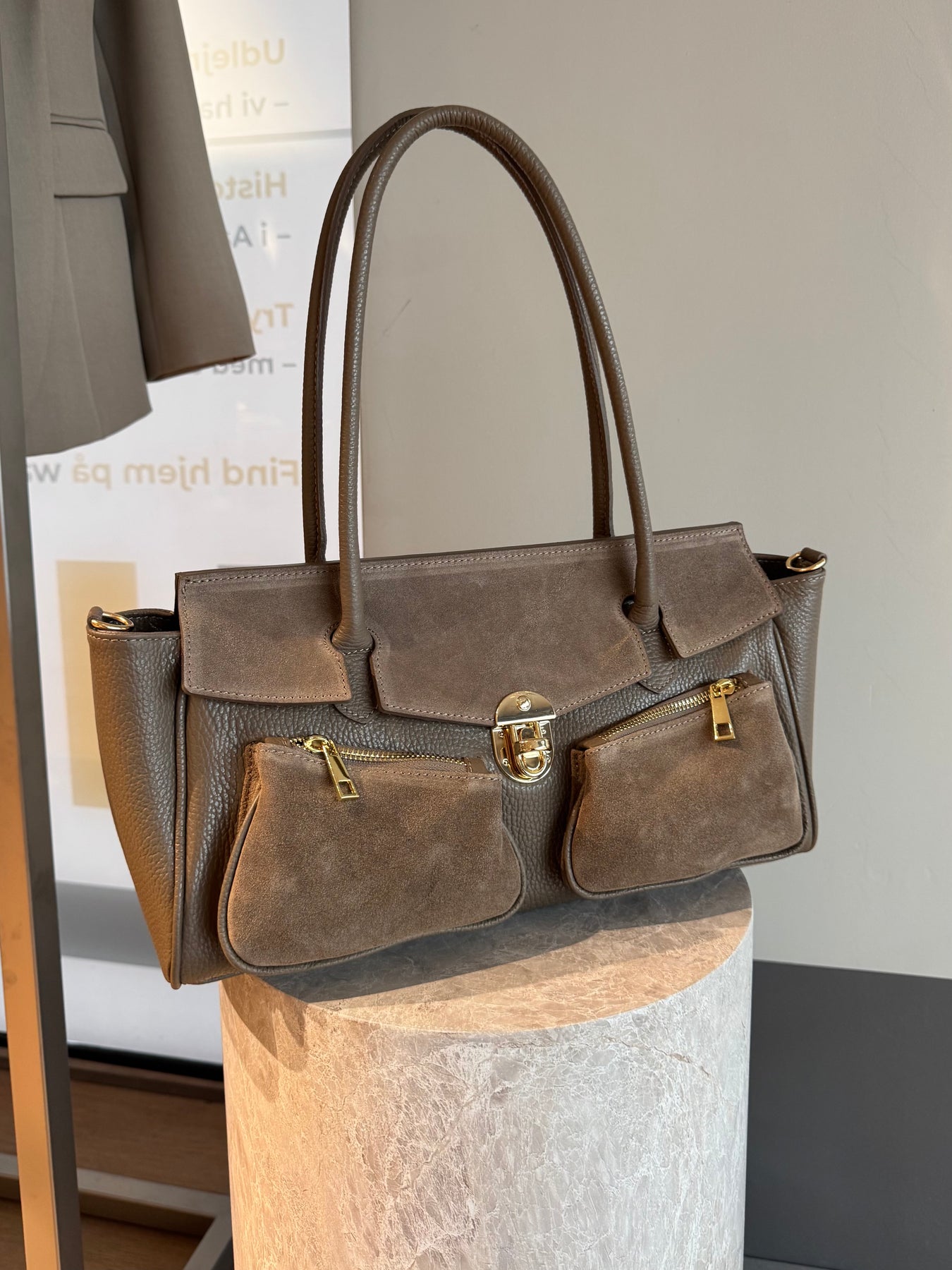 Natalie tasken har de fineste detaljer og lukkes fortil med en klip, den fine taske kommer med en ekstra rem, så du også kan sætte den på skulderen.