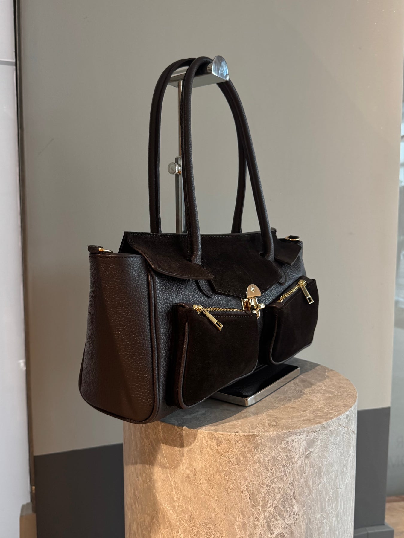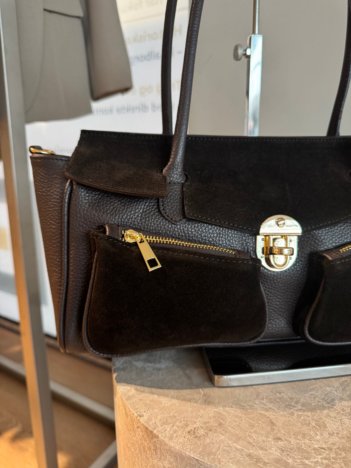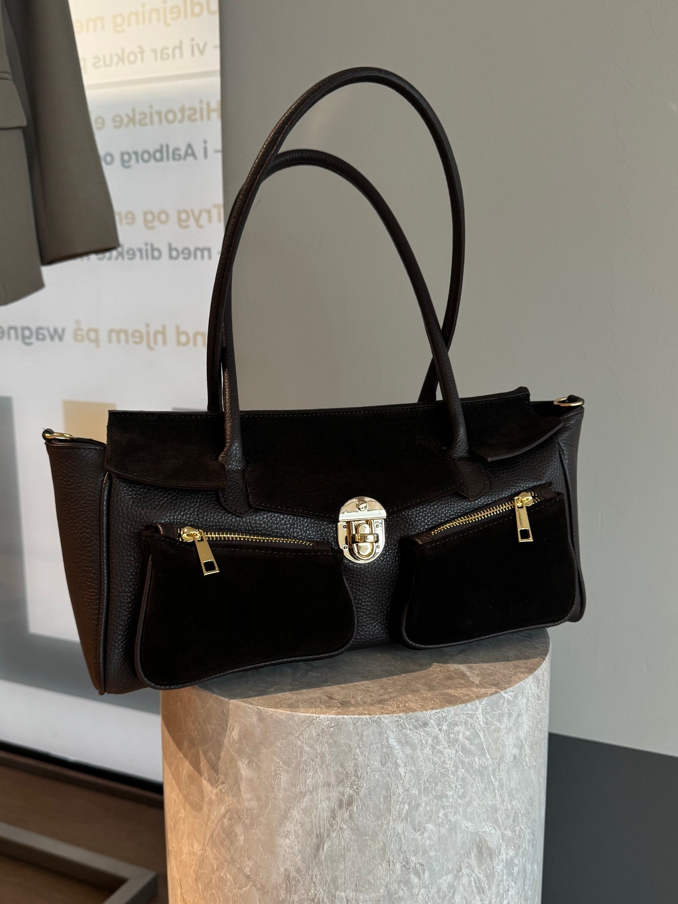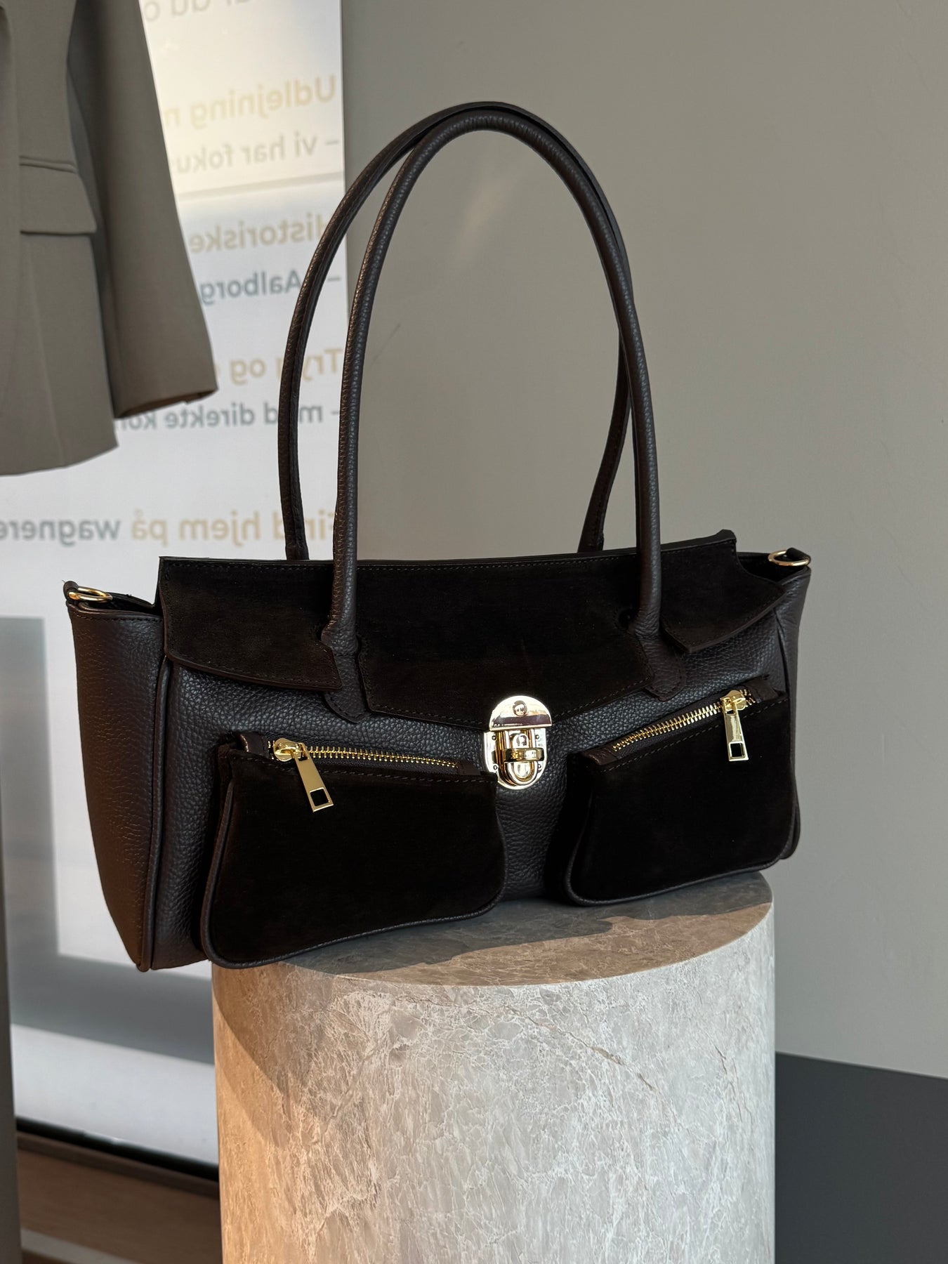 Natalie tasken har de fineste detaljer og lukkes fortil med en klip, den fine taske kommer med en ekstra rem, så du også kan sætte den på skulderen.