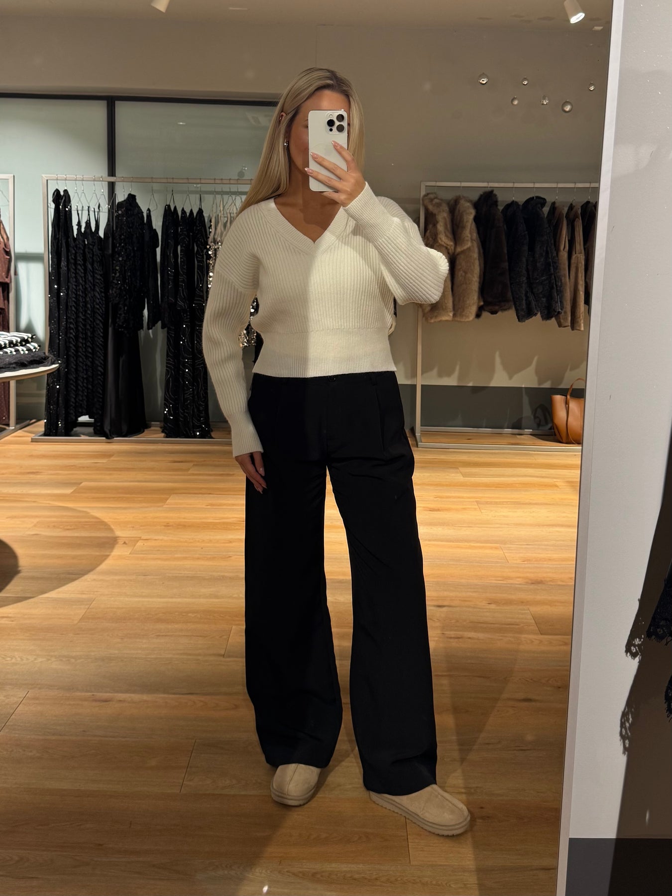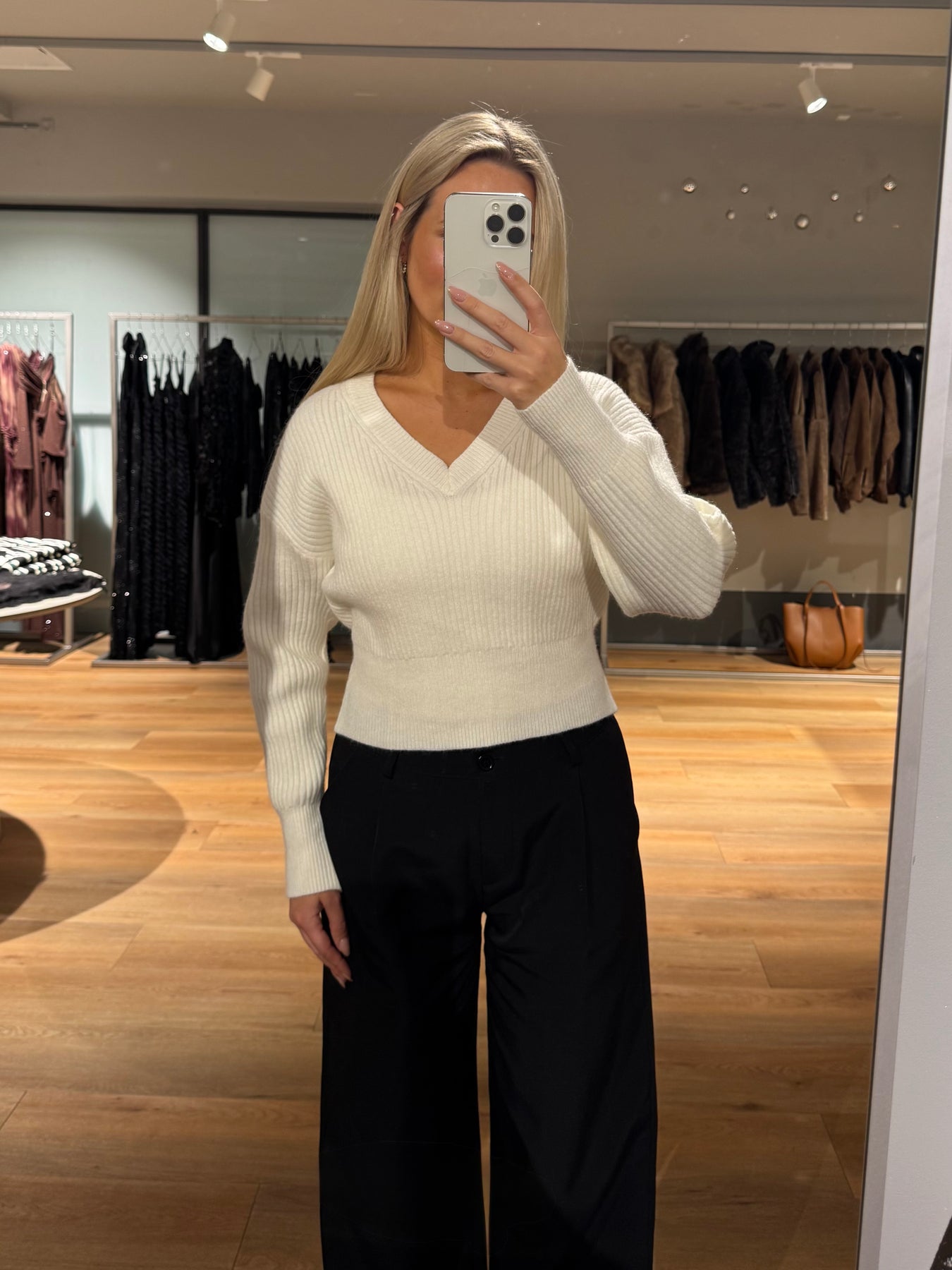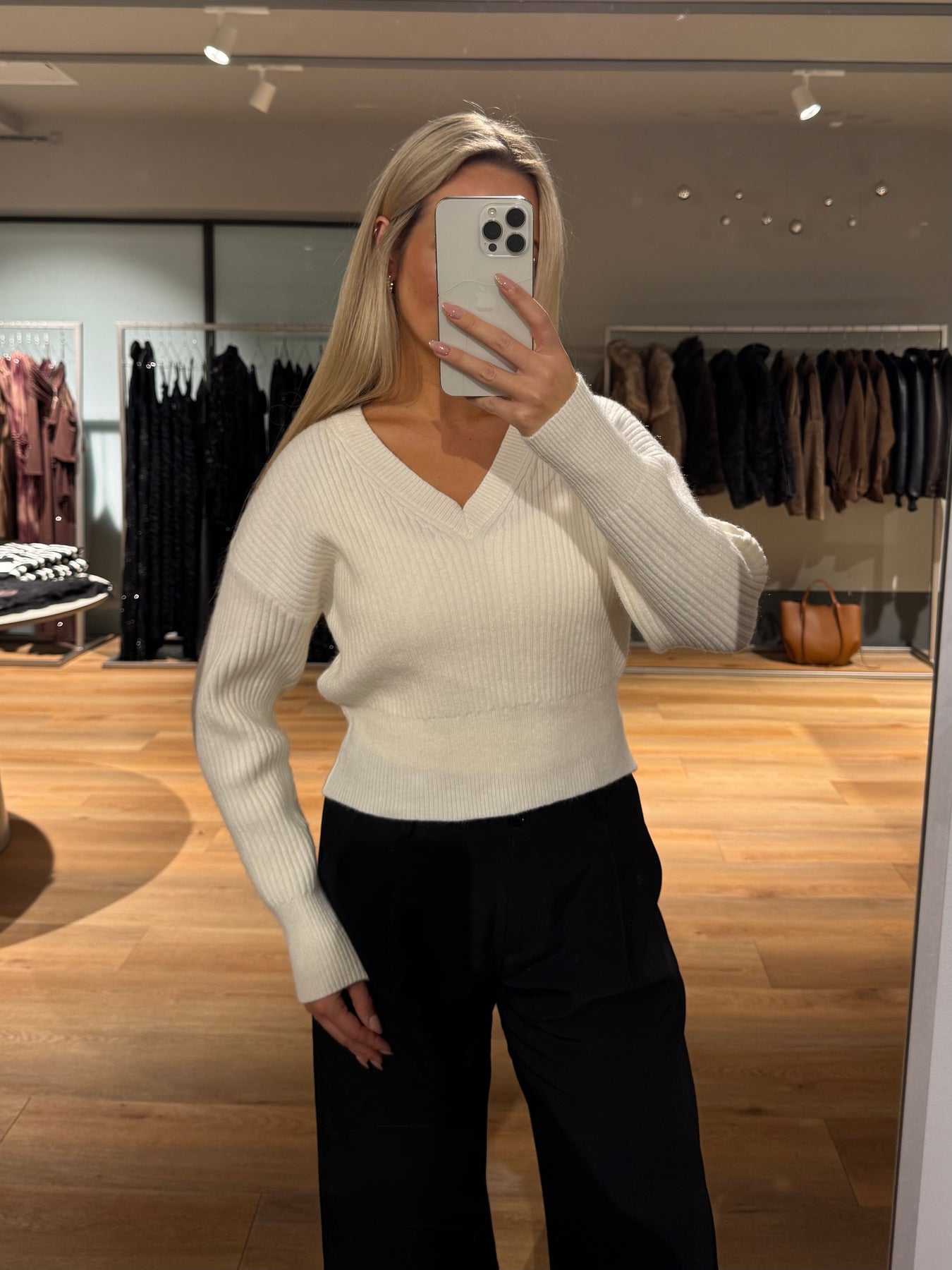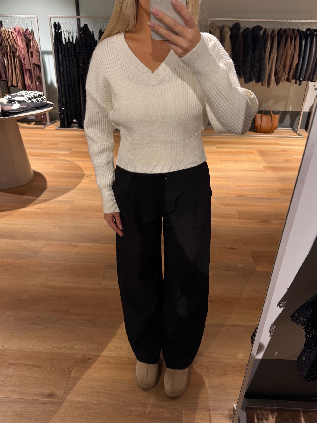 Nellie strikken har en dyb v-udskæring og den har drop-shoulders. Den er perfekt til hverdag og er skøn at have på.