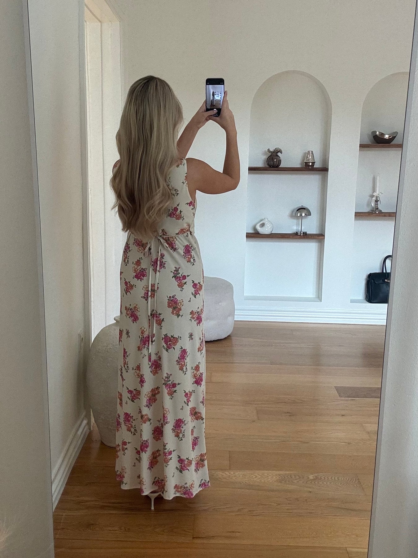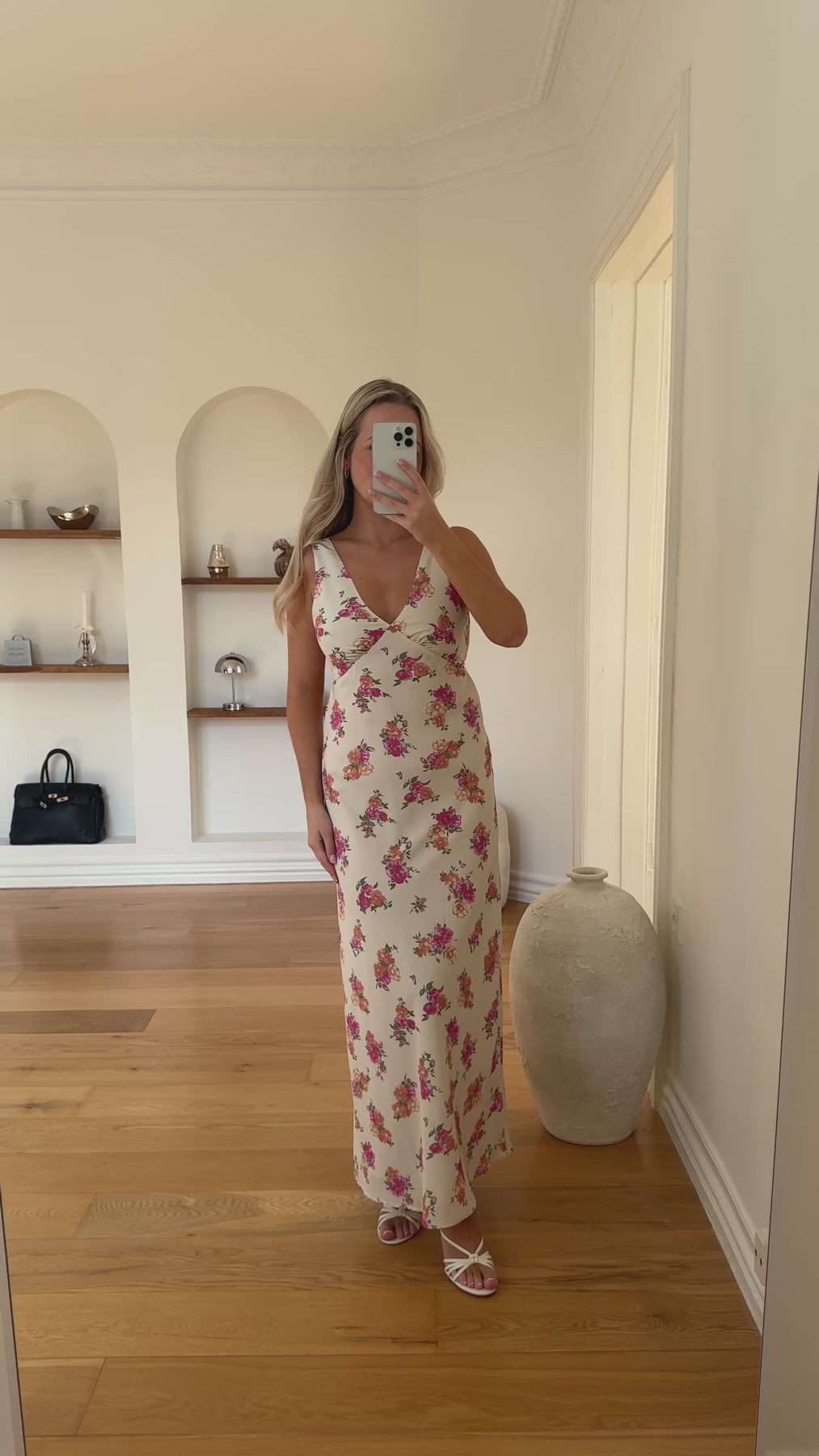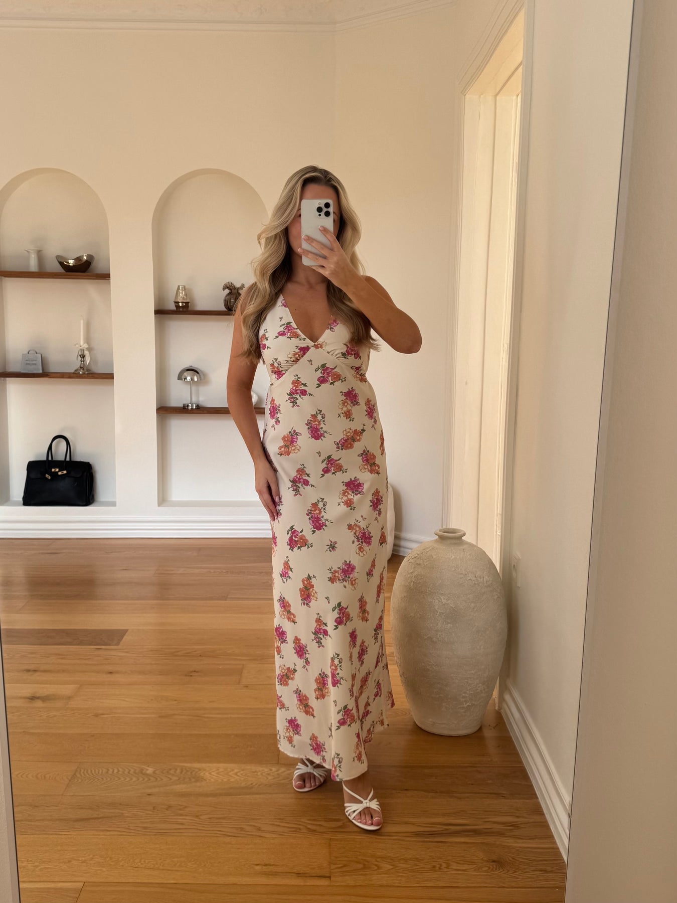 Nelly kjolen er en feminin og klassisk kjole med et smukt blomsterprint, der giver et let og romantisk udtryk. Den elegante slå-om effekt ved overkroppen fremhæver taljen og skaber en flatterende silhuet, mens den lange længde tilfører et tidløst og sofistikeret look.