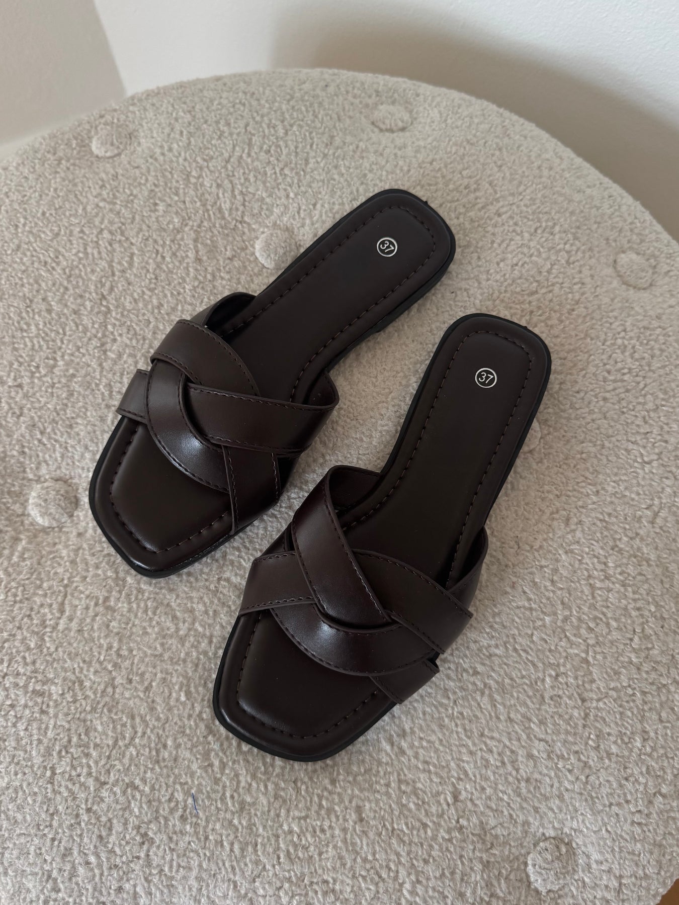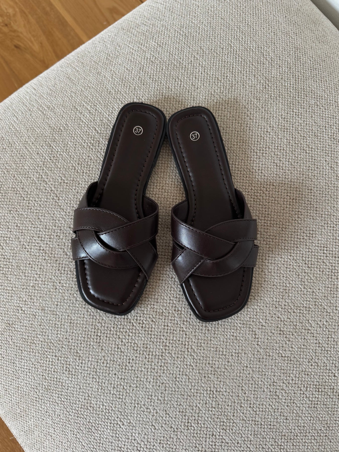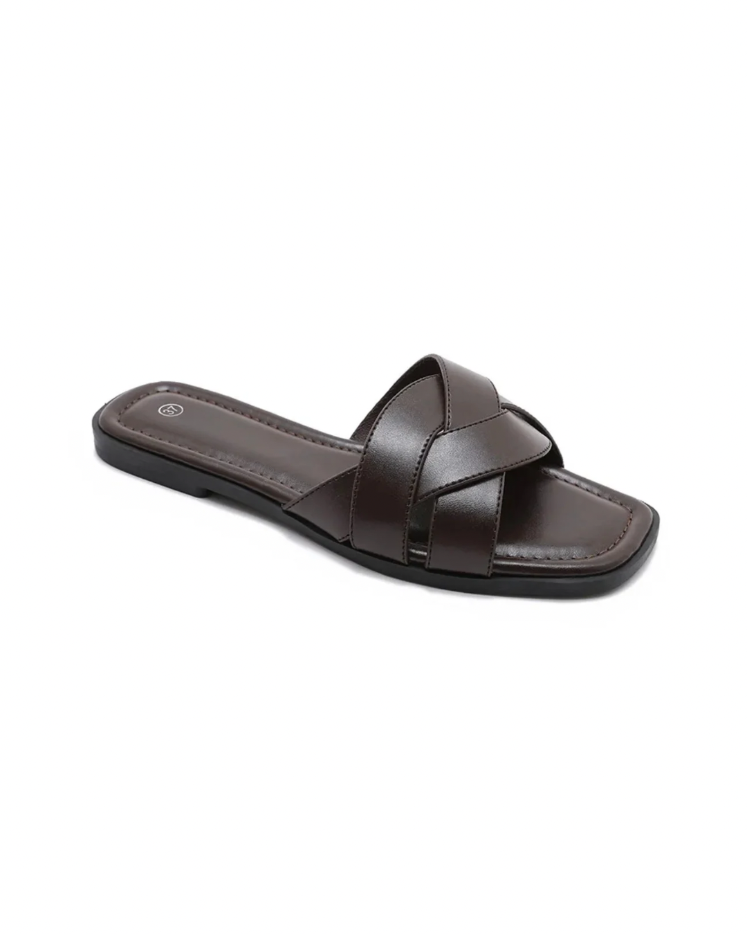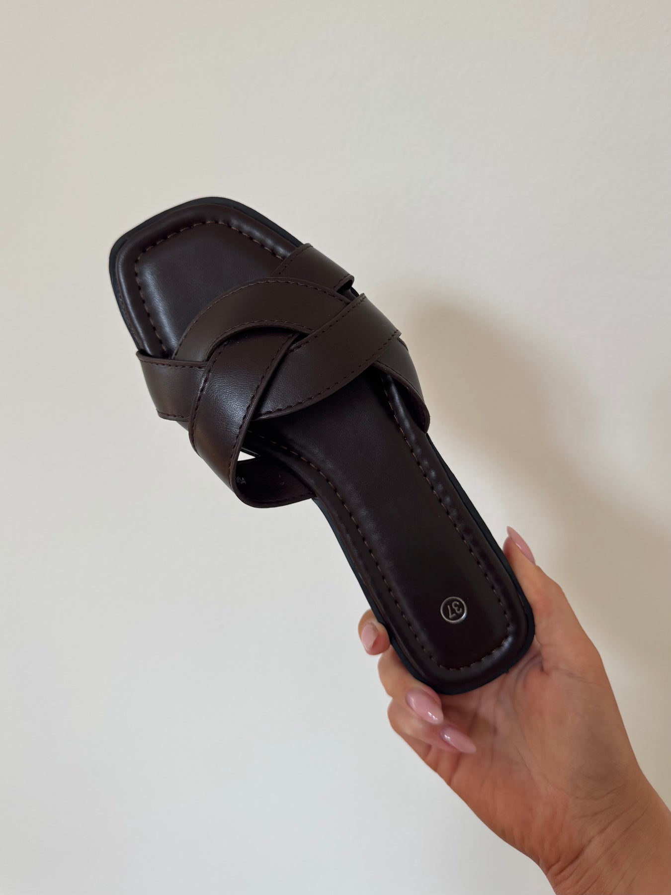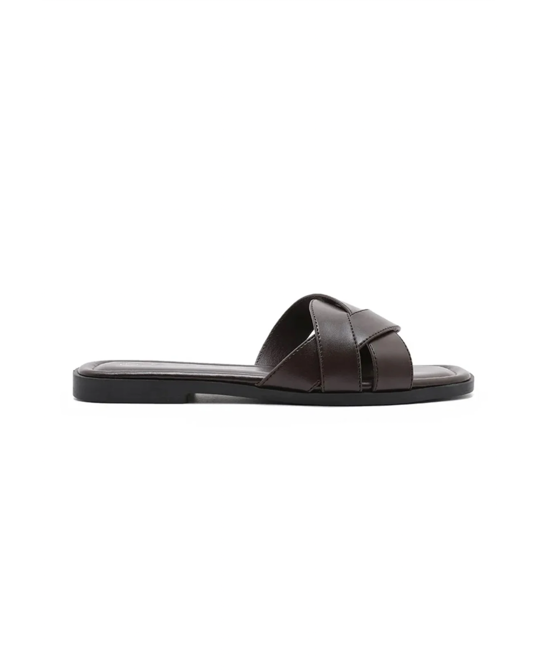 Nicole er en stilren og moderne sandal med et minimalistisk og eksklusivt udtryk. De brede, krydsede remme giver et elegant look, mens de fine kontrastsyninger tilfører et raffineret og gennemtænkt touch.