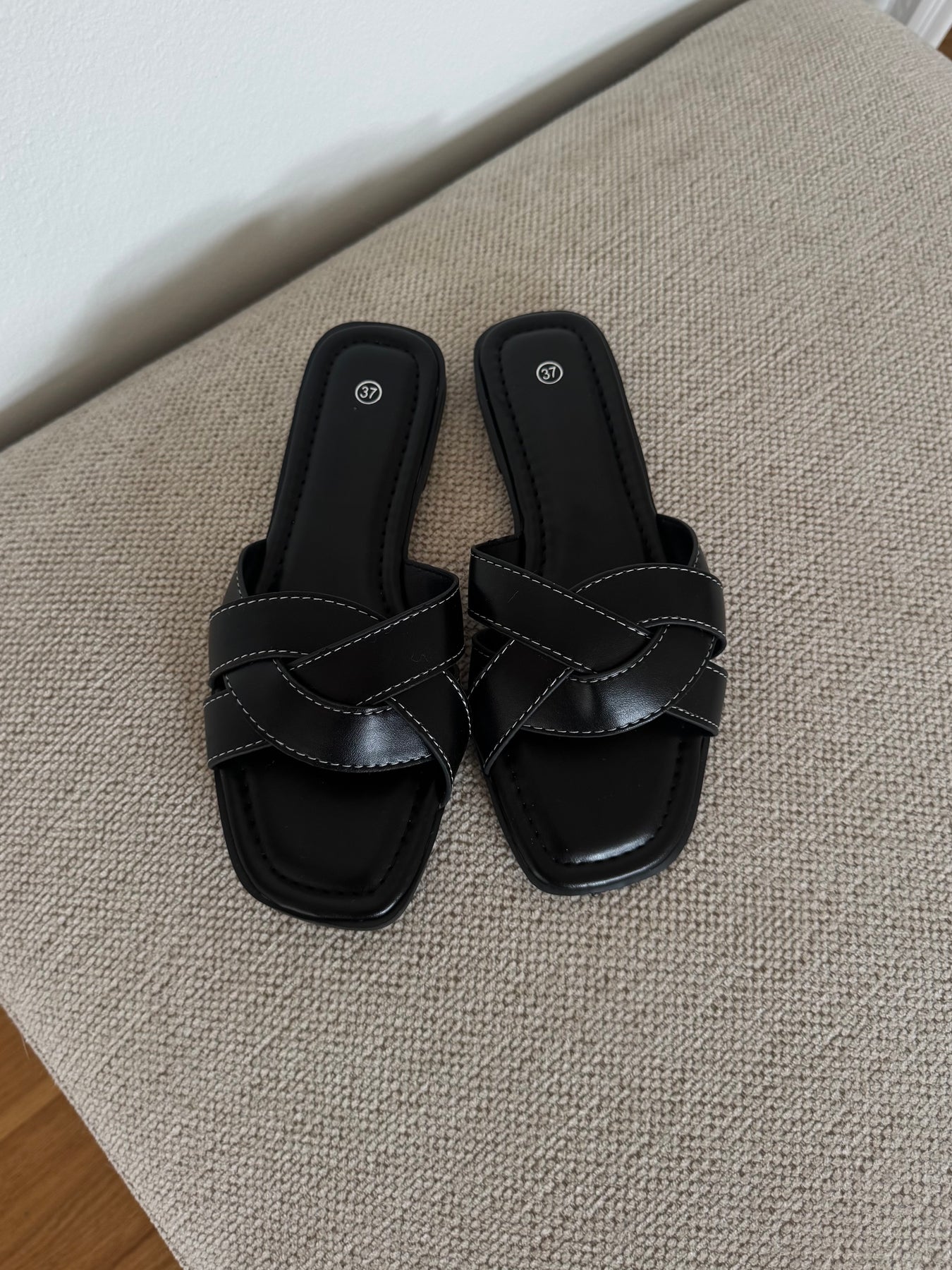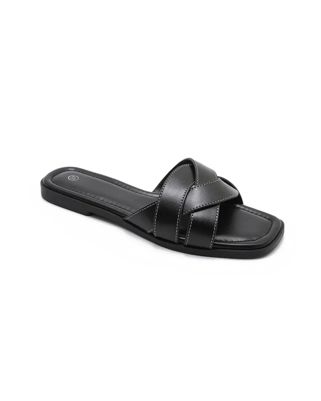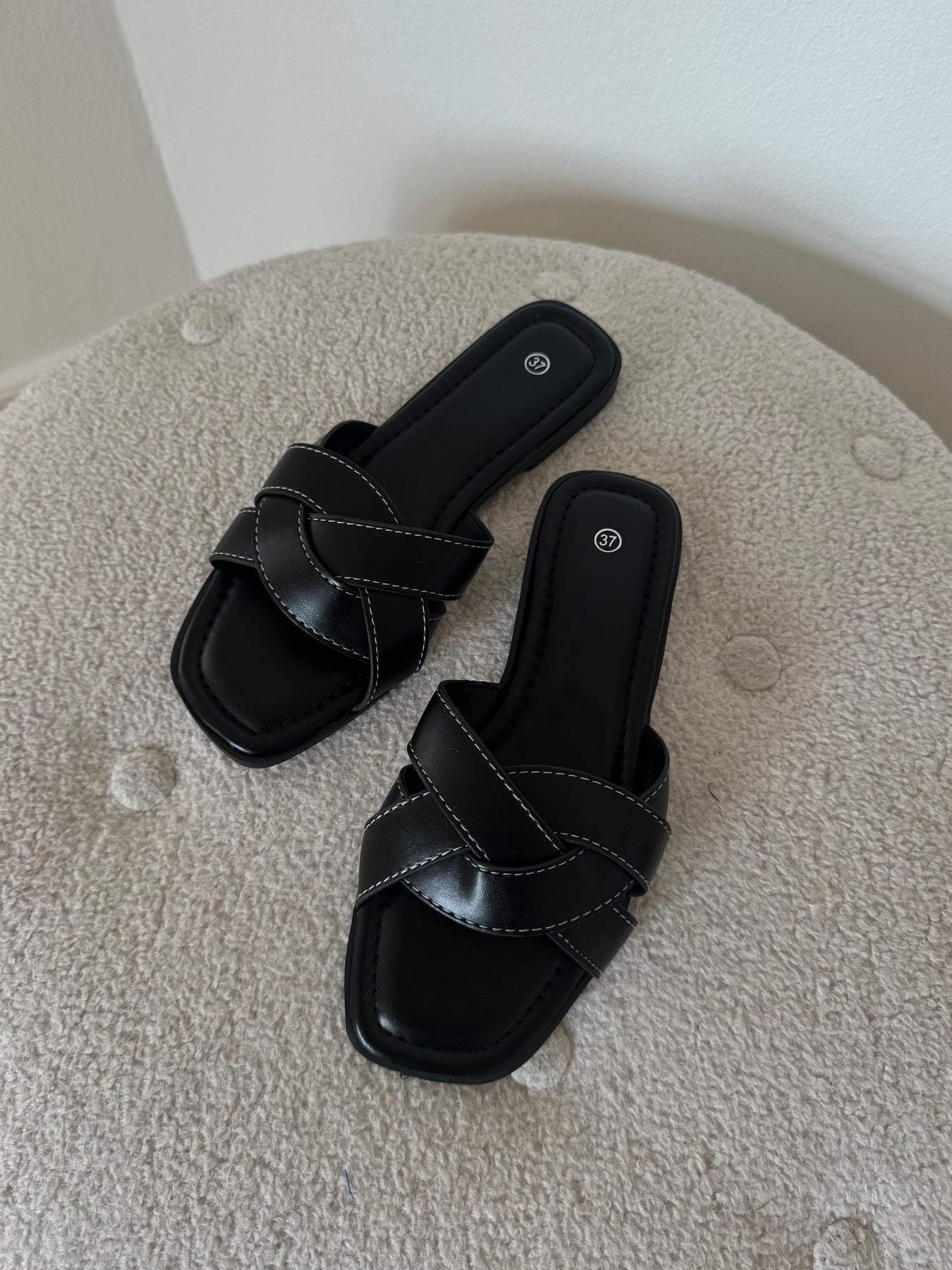 Nicole er en stilren og moderne sandal med et minimalistisk og eksklusivt udtryk. De brede, krydsede remme giver et elegant look, mens de fine kontrastsyninger tilfører et raffineret og gennemtænkt touch.