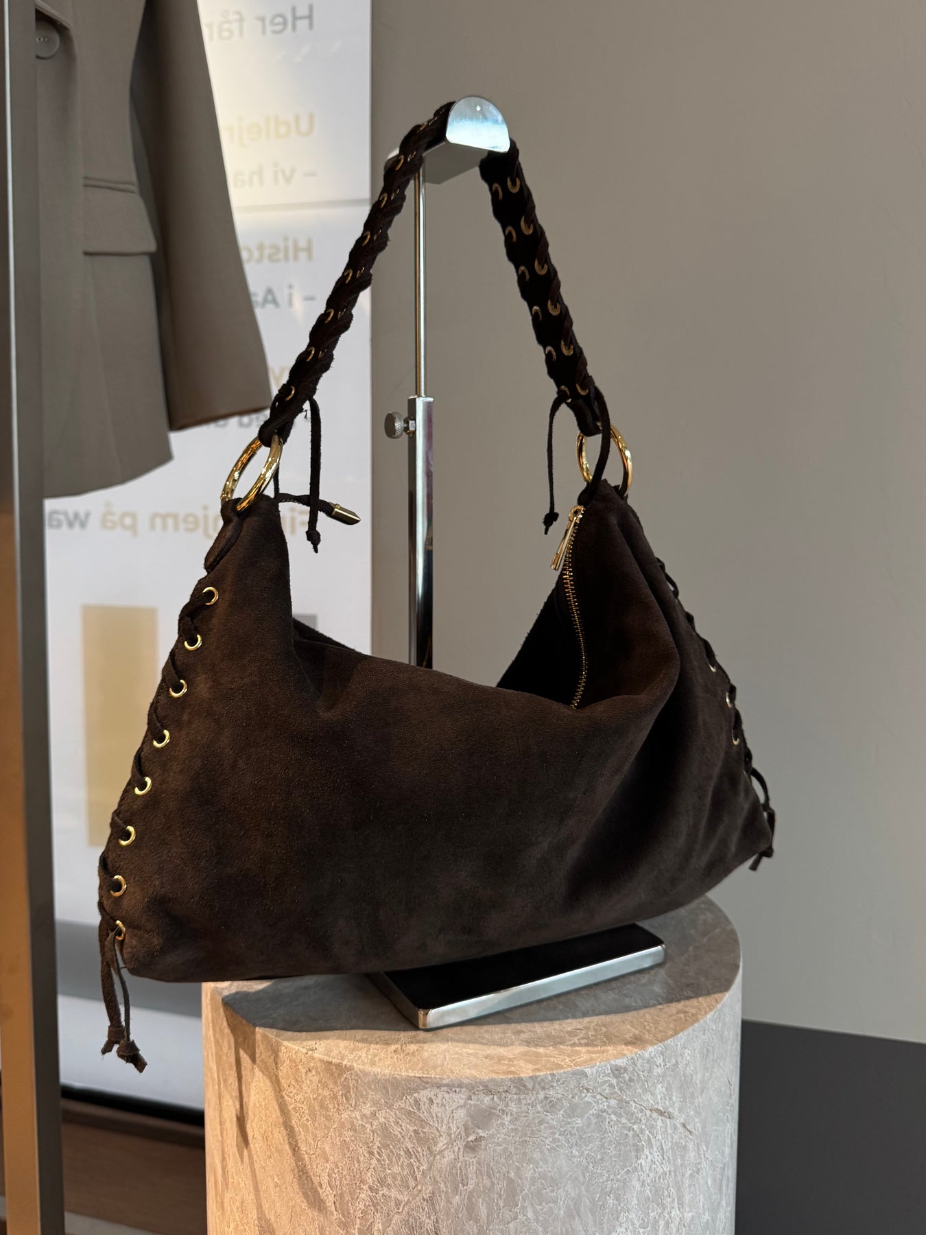 Rachel tasken har de fineste detaljer og kommer med en indvendig lynlåslomme. Tasken lukkes med en lynlås.