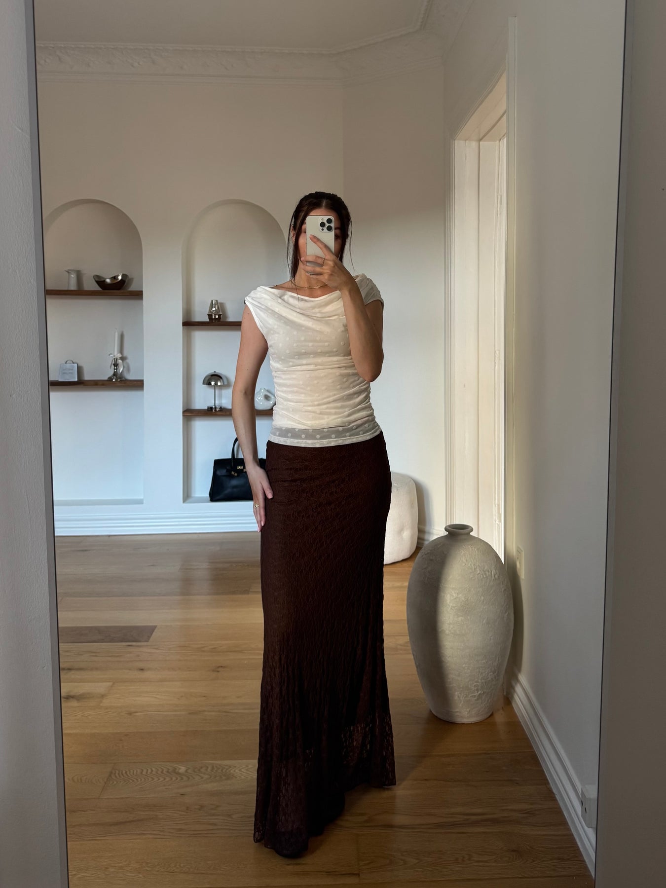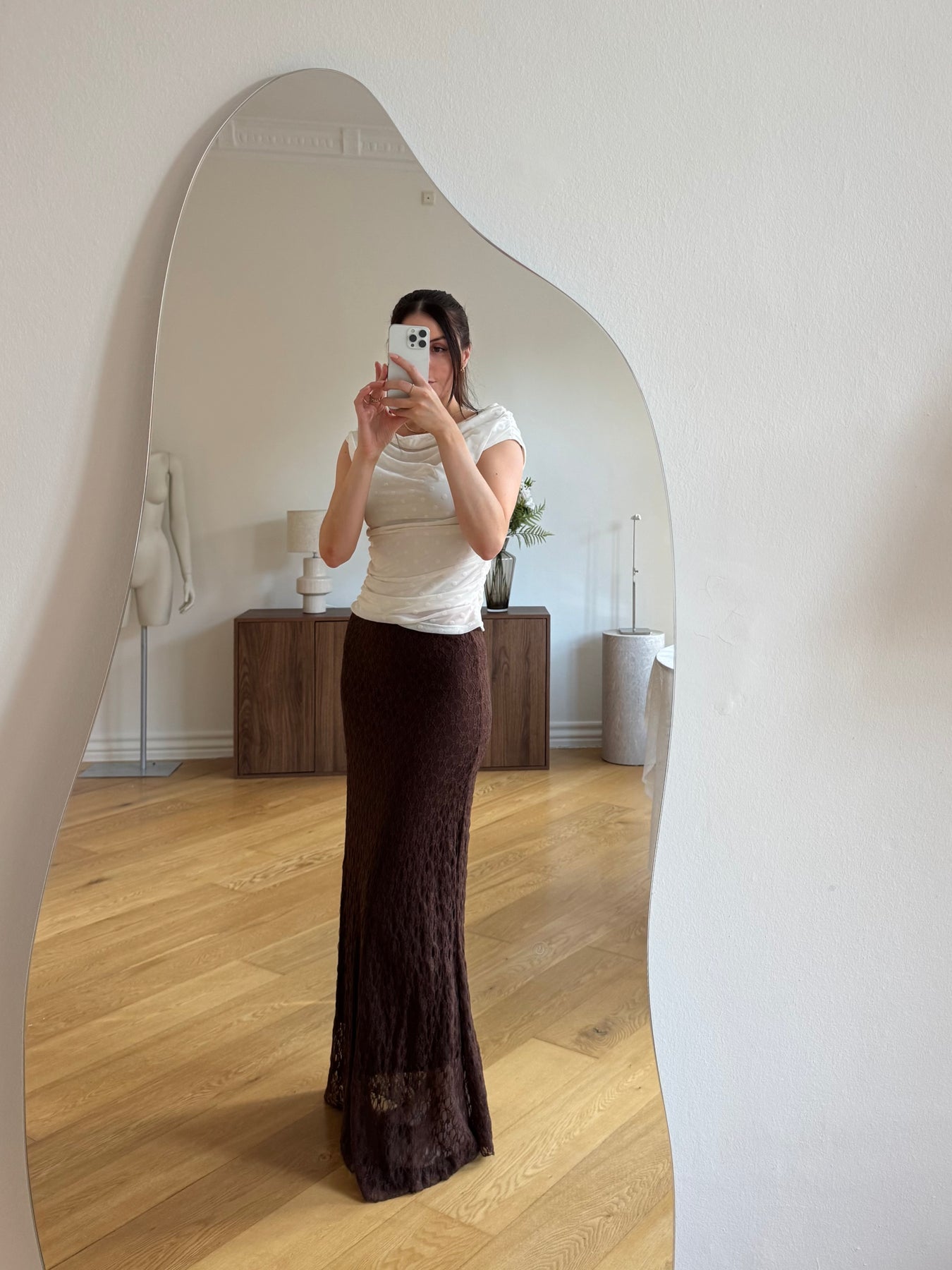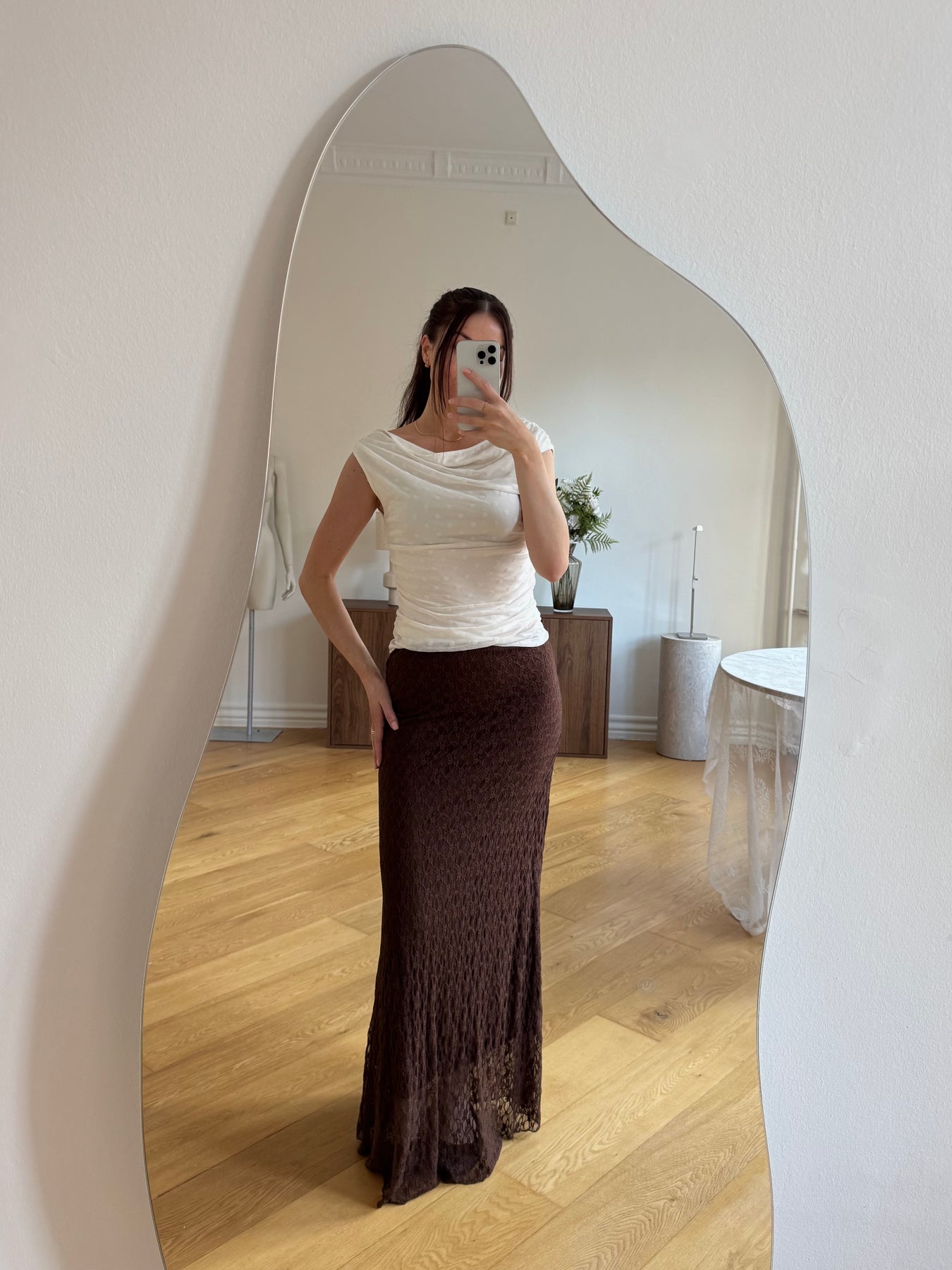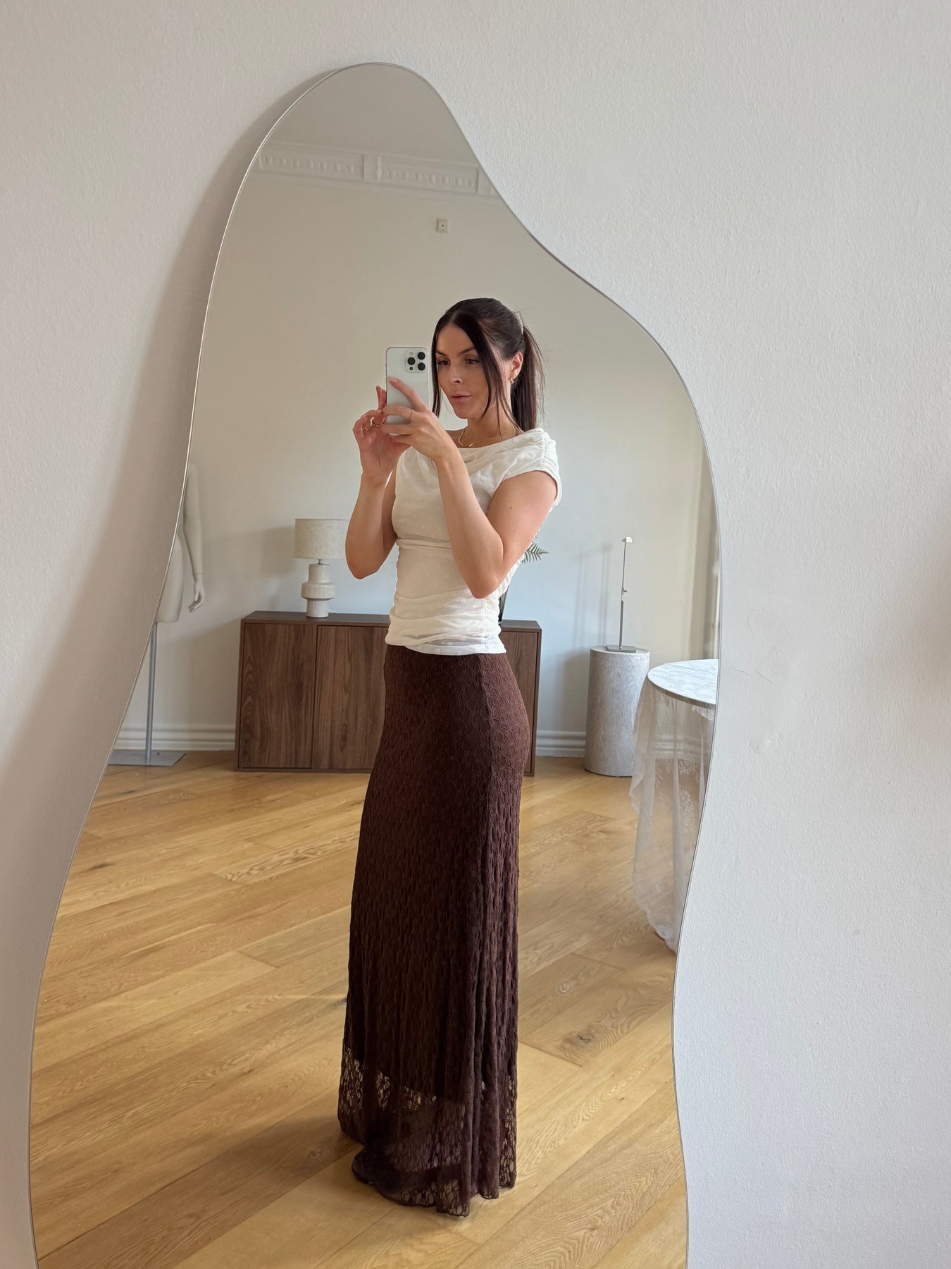 Serena nederdelen er en elegant og feminin nederdel i en smuk blondestruktur, der giver et let og romantisk udtryk. Den lange silhuet og det bløde fald skaber en elegant bevægelse, som gør nederdelen både sofistikeret og behagelig at have på.