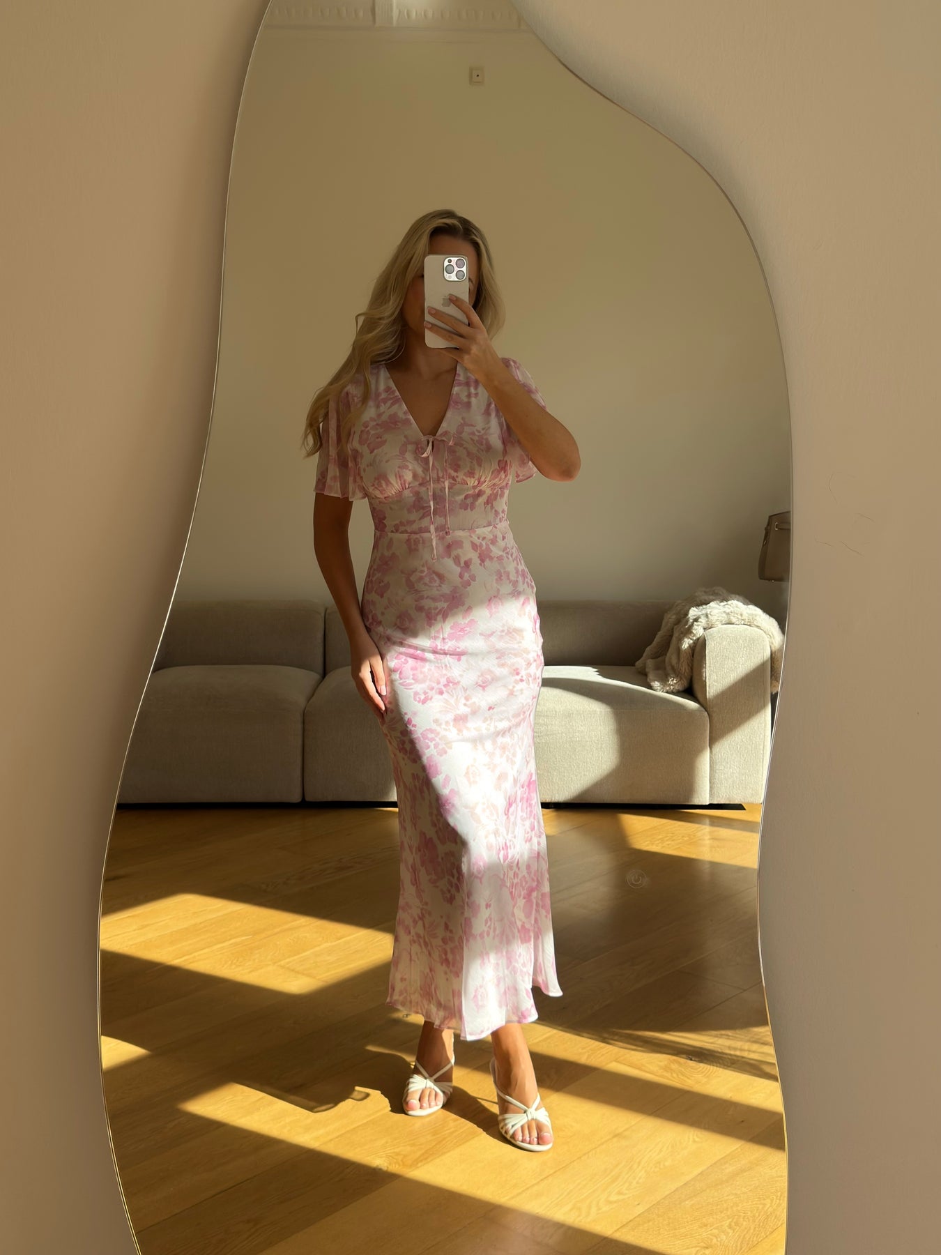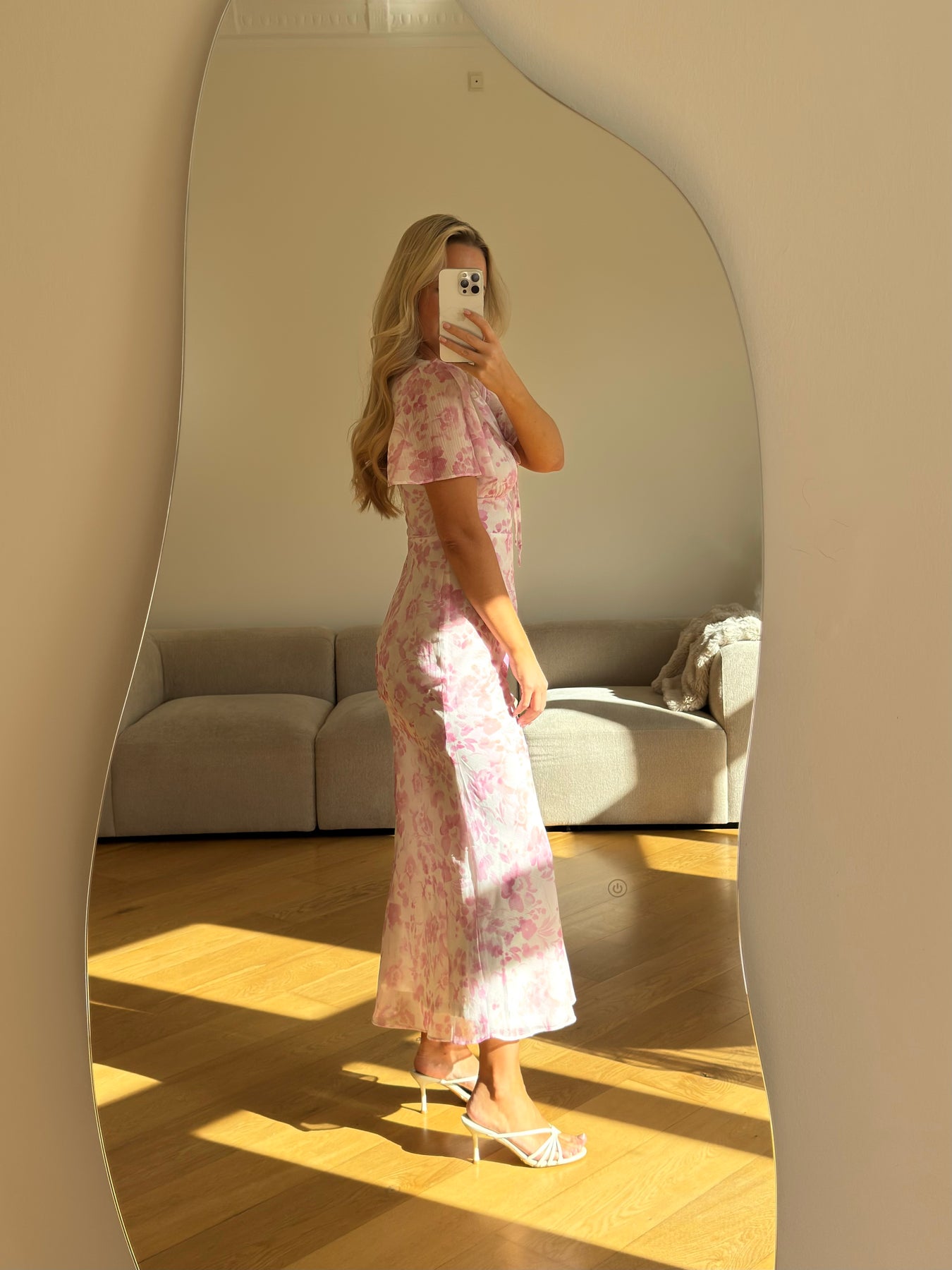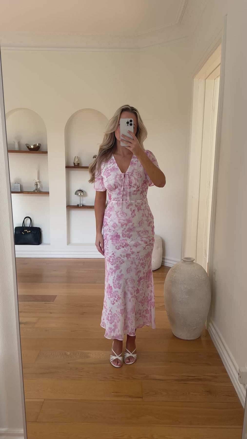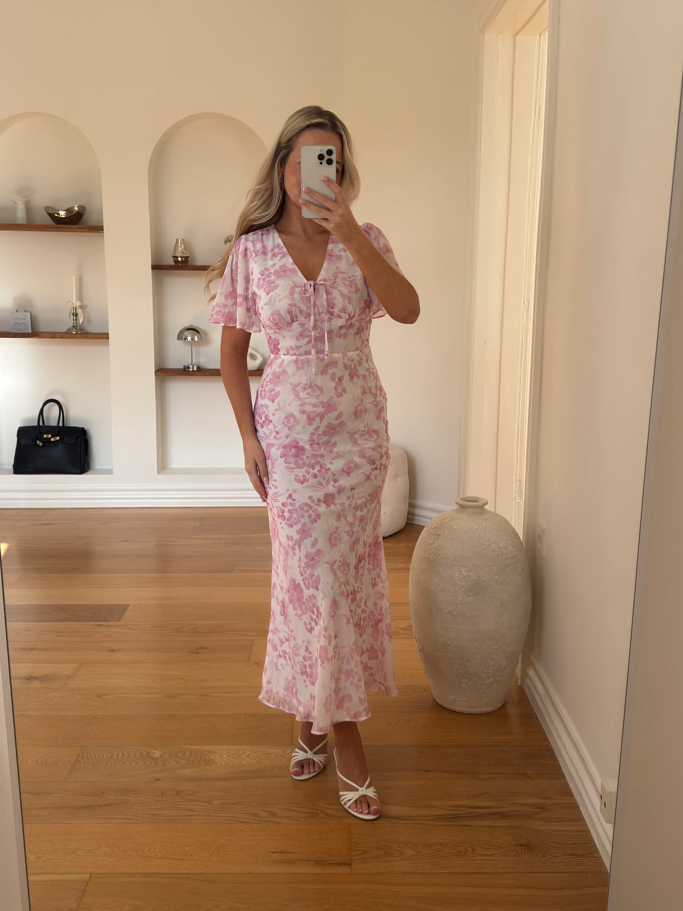 Stella kjolen er en feminin og romantisk kjole med et smukt blomsterprint i bløde nuancer. Den elegante V-udskæring og de korte ærmer giver et let og sommerligt udtryk, mens bindedetaljen foran tilfører et fint og delikat touch.