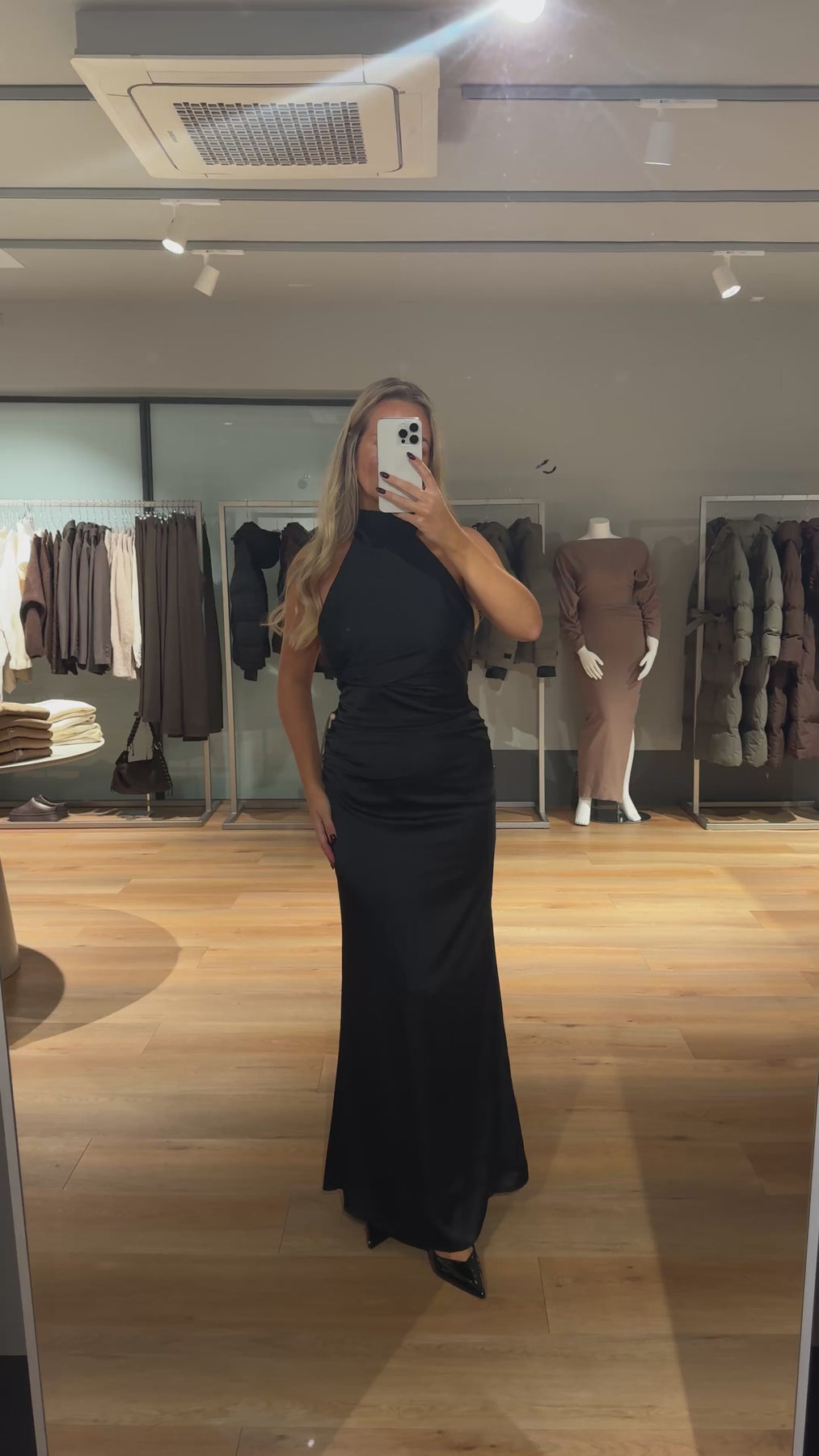 Stephanie kjolen har et glansfuldt look, den bindes i nakken og og har en åben ryg. Den er helt perfekt til årets sidste fester. Den smukke kjole er helt perfekt til fine begivenheder og til nytår.