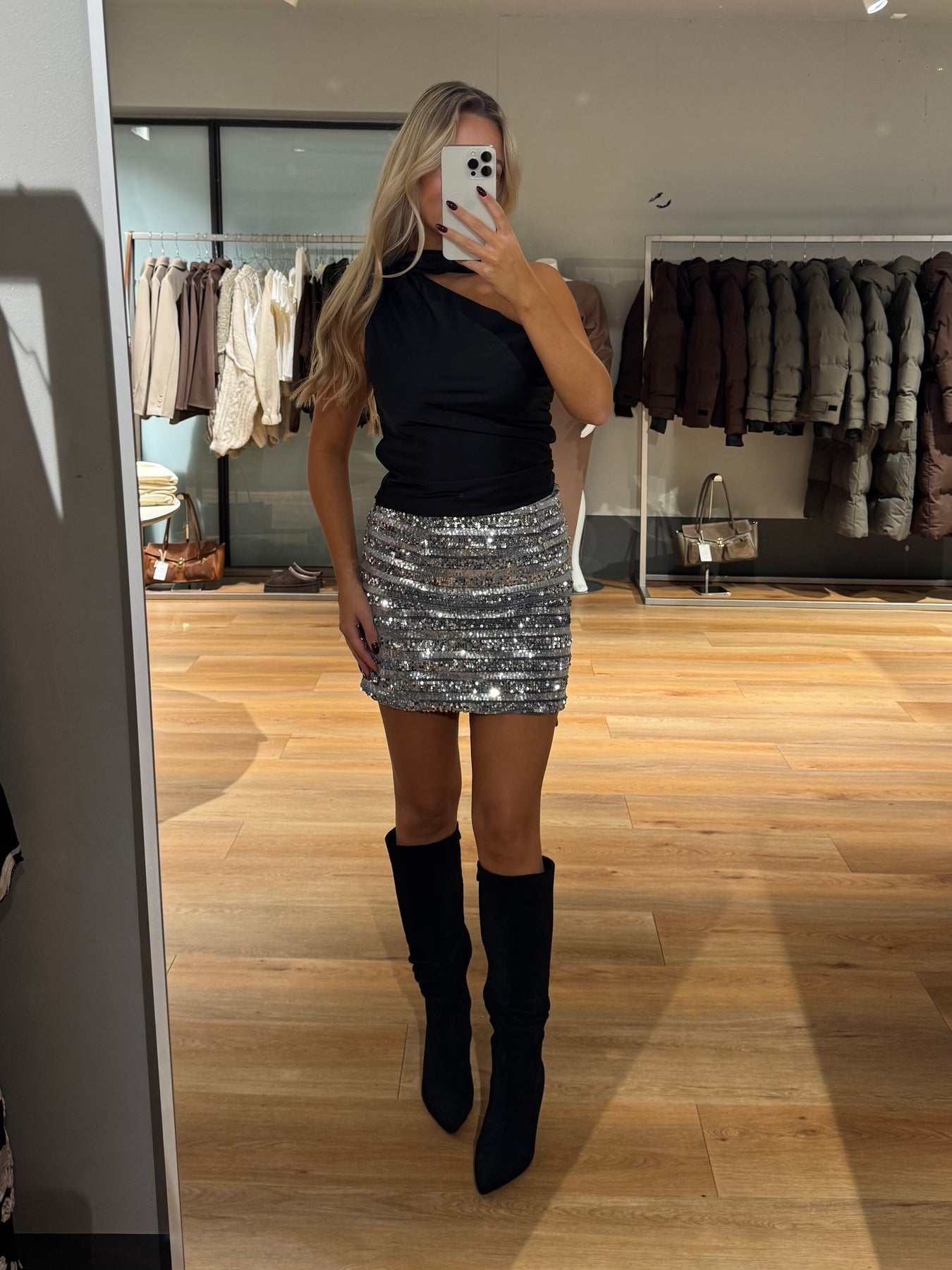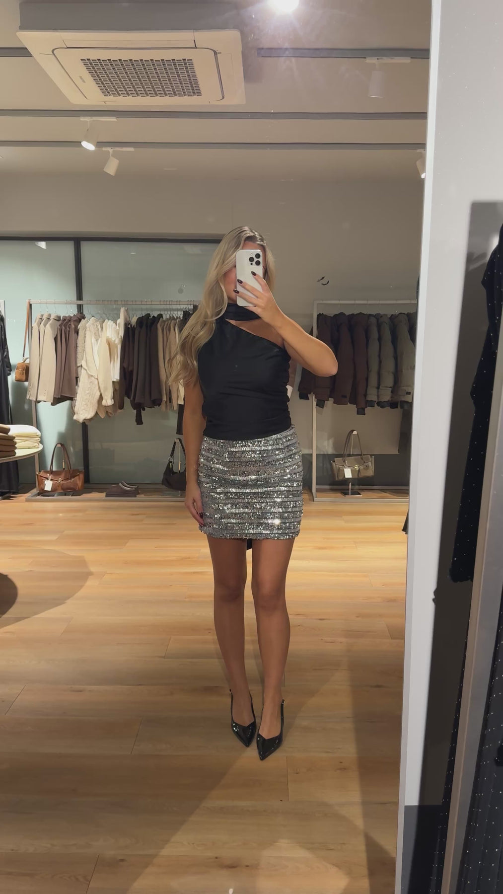 Teresa glimmer nederdelen har det fineste mønster i stoffet. Den er tætsiddende og perfekt til en aften fyldt med glimmer og glitter. Den smukke nederdel er perfekt til en glimmer fest og til nytår.