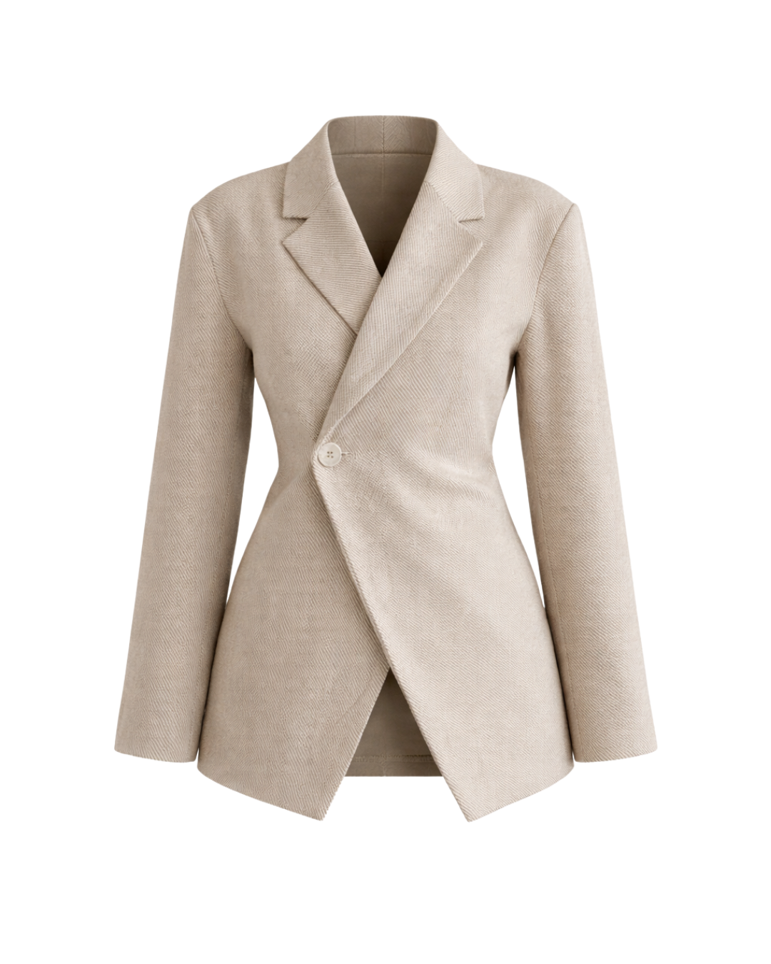 Carolina är en elegant och figurnära kavaj med ett modernt, arkitektoniskt utseende. Den markerade midjan och den asymmetriska överlappningen framtill skapar en smickrande silhuett, medan den strukturerade kvaliteten ger en exklusiv och komplett look.