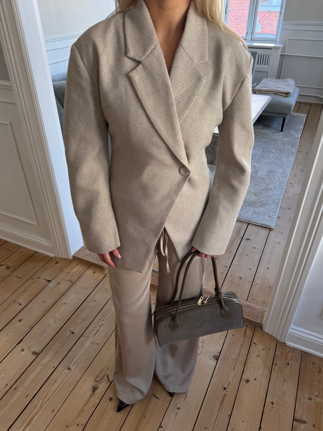 Designen kombinerar klassisk skrädderi med en modern twist, vilket gör Carolina till ett iögonfallande plagg i din garderob. Den är perfekt för dig som vill ha något tidlöst – men ändå annorlunda.