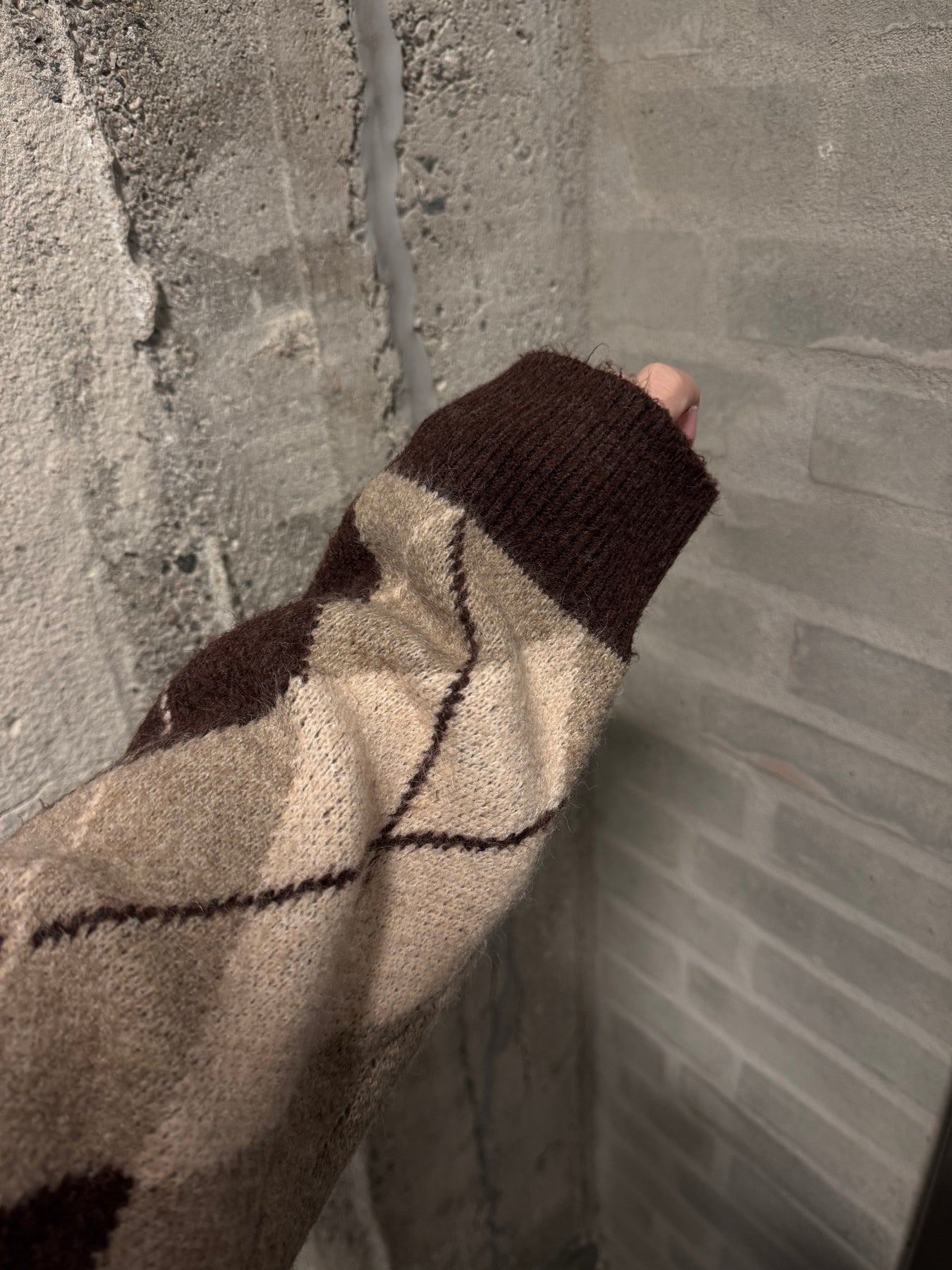 Ida är en snygg stickad tröja med ett tidlöst argyle-inspirerat mönster i varma bruna och beige nyanser. Den mjuka stickningen ger en bekväm passform, medan kragen och knappknäppningen ger ett elegant och komplett utseende.
