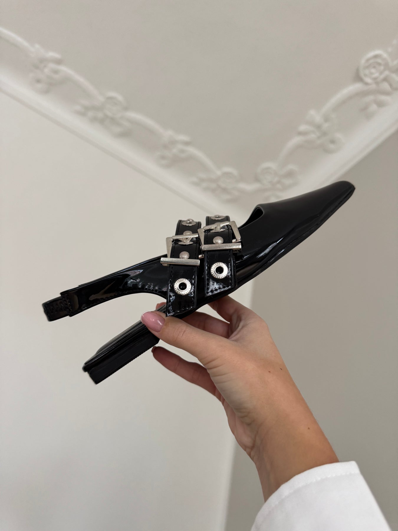 Isabella slingback-skor i lackskinn med spännen