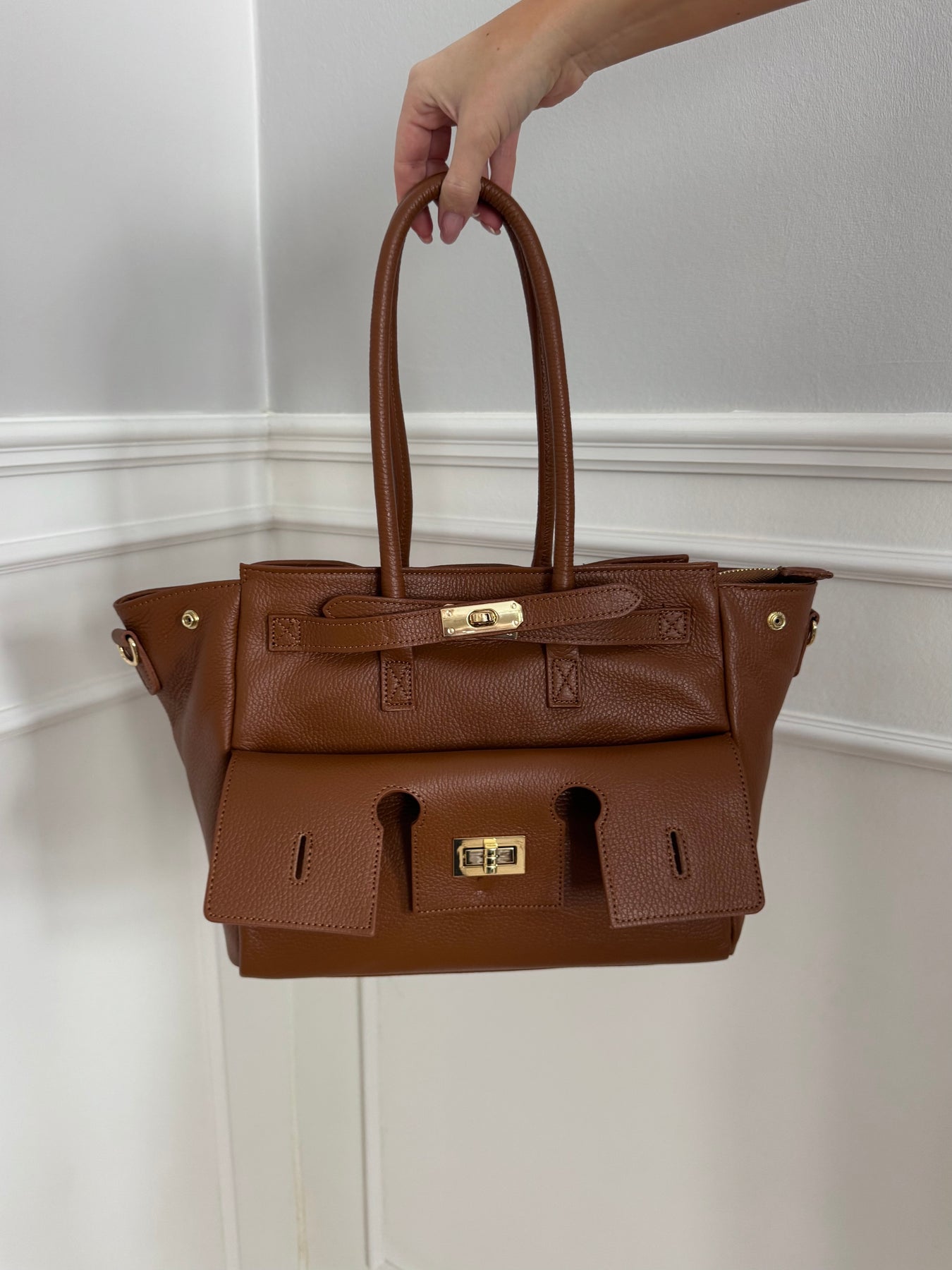 Helena är en elegant och strukturerad väska med ett sofistikerat och exklusivt uttryck. Den klassiska designen i kombination med de slående metalldetaljerna ger en lyxig look som lyfter vilken outfit som helst.