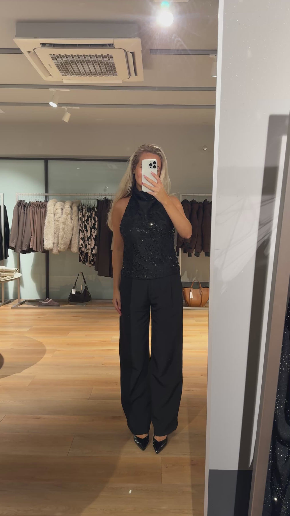 Laura-toppen stängs i halsen och har de vackraste paljetterna. Toppen är perfekt för årets sista fester.