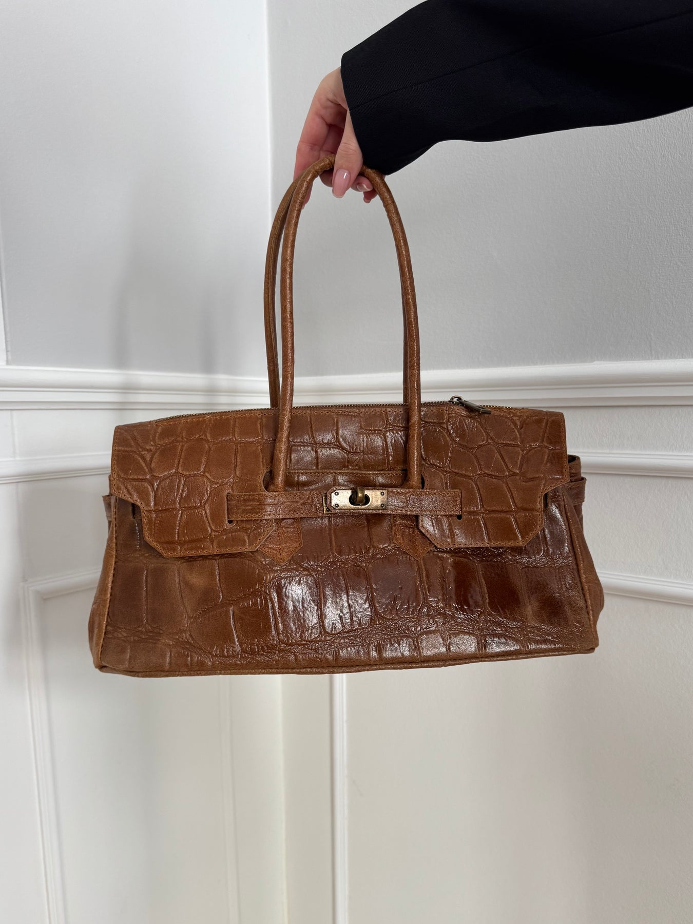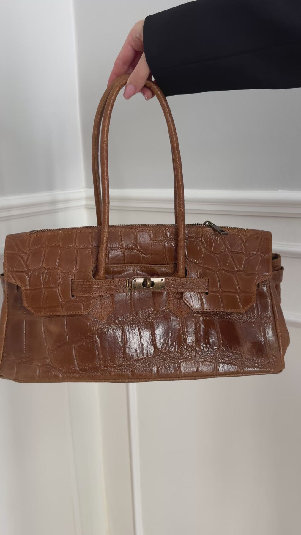 Marina är en elegant och karaktärsfull väska med ett exklusivt uttryck. Den strukturerade designen och den distinkta ytan ger ett sofistikerat utseende som tillför kant och lyx till vilken outfit som helst.