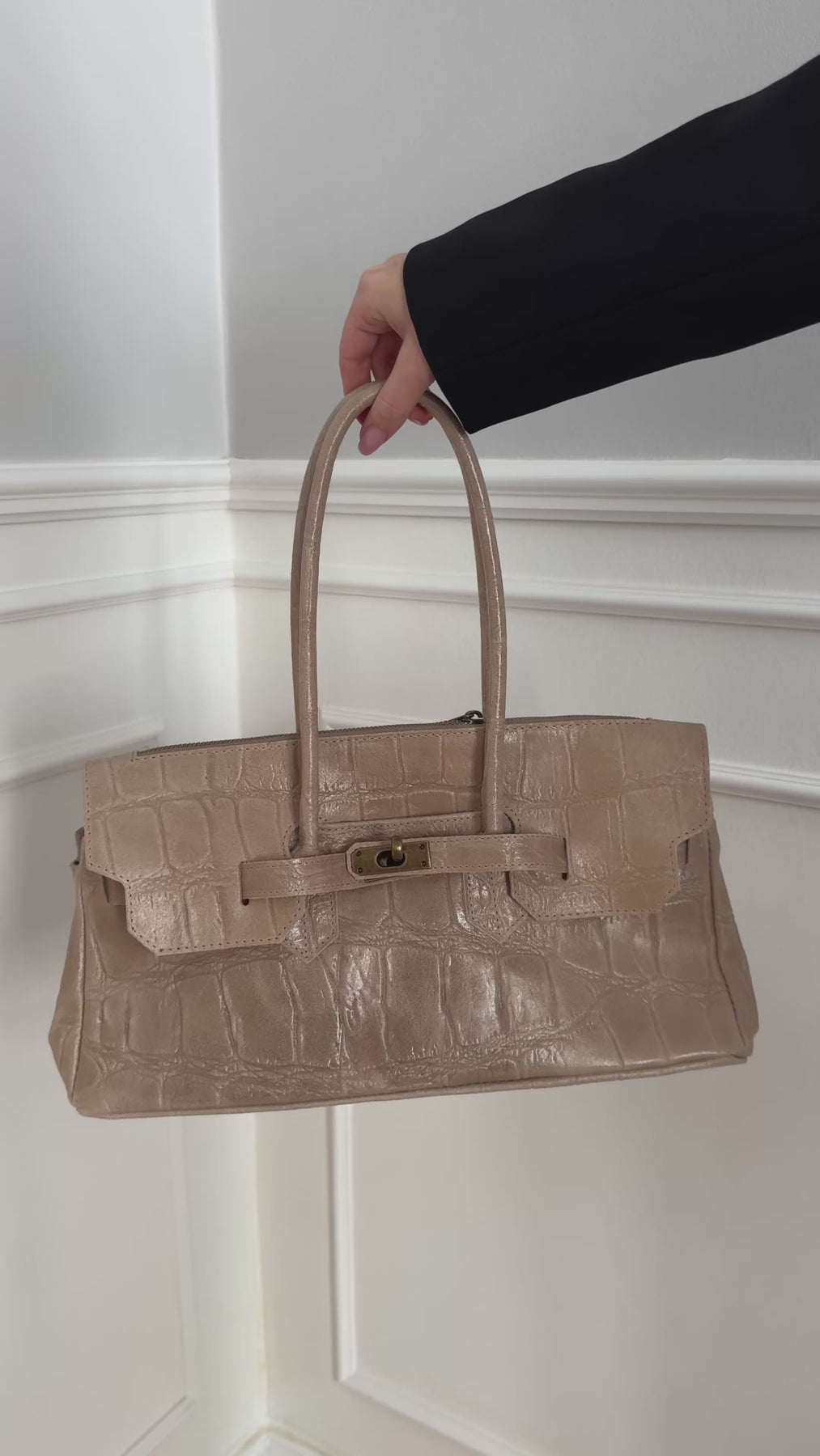 Marina är en elegant och karaktärsfull väska med ett exklusivt uttryck. Den strukturerade designen och den distinkta ytan ger ett sofistikerat utseende som tillför kant och lyx till vilken outfit som helst.