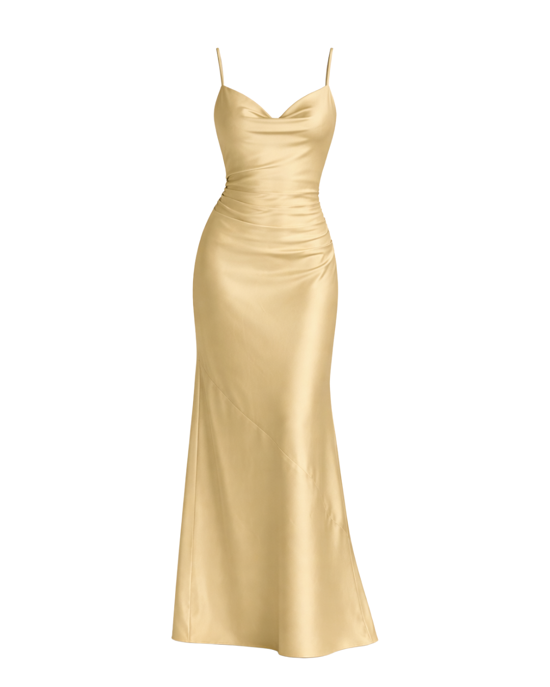 De tunna banden och den smickrande halsringningen skapar en lätt och feminin look, vilket gör klänningen perfekt för speciella tillfällen, sommarfester eller kvällar där du vill känna dig extra elegant.
