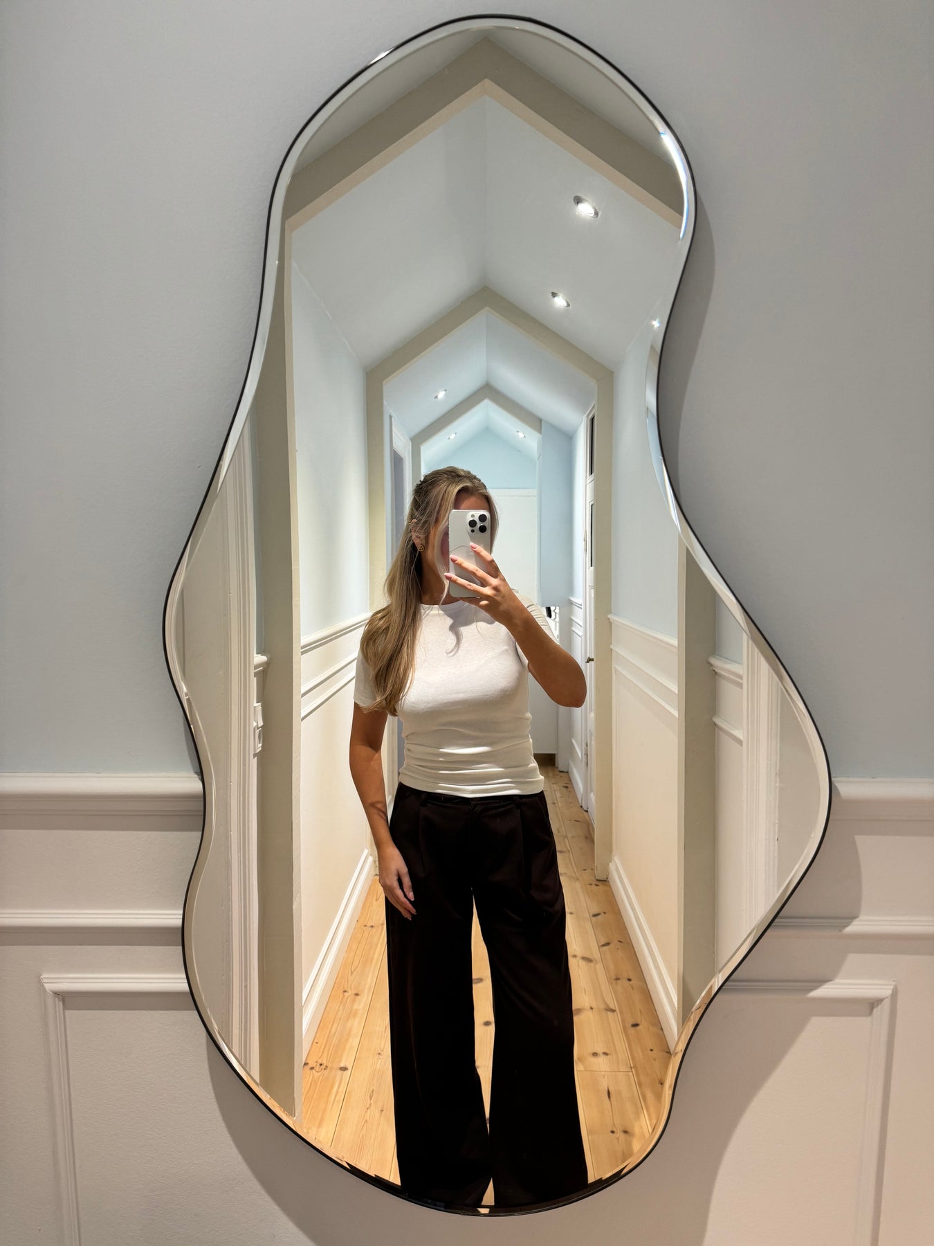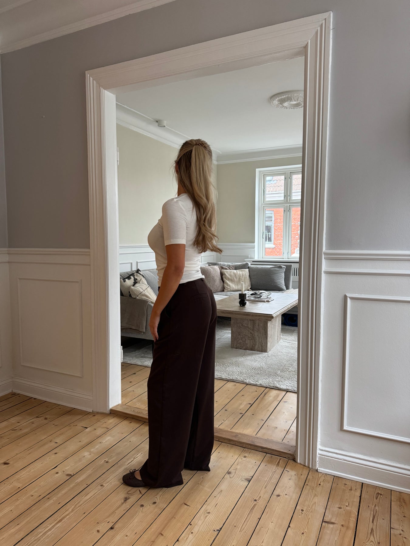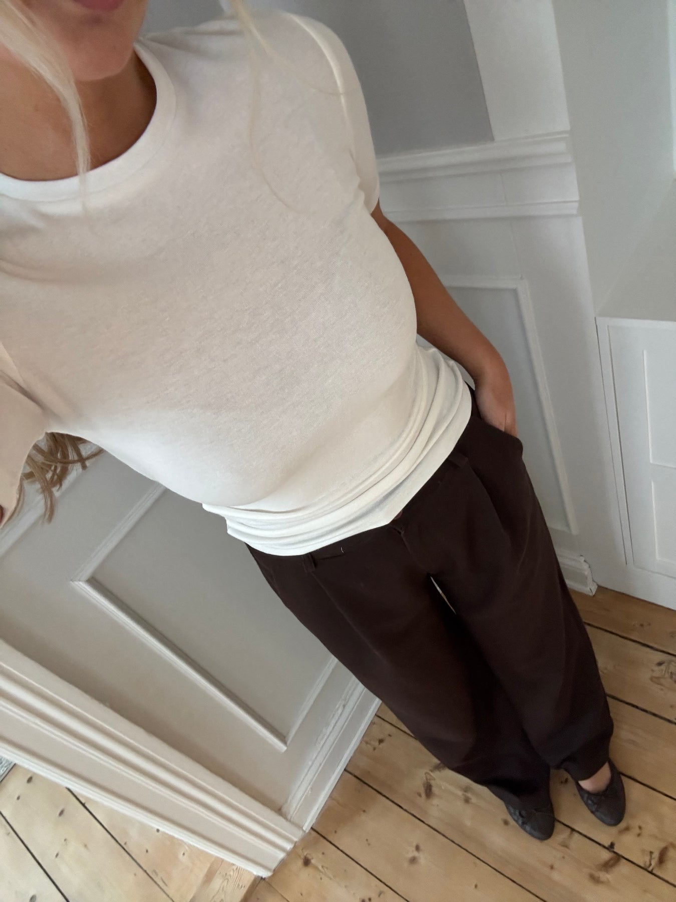 Bär t-shirten med jeans och sneakers för en avslappnad look, eller styla den med en kavaj och byxor för en enkel och snygg outfit.